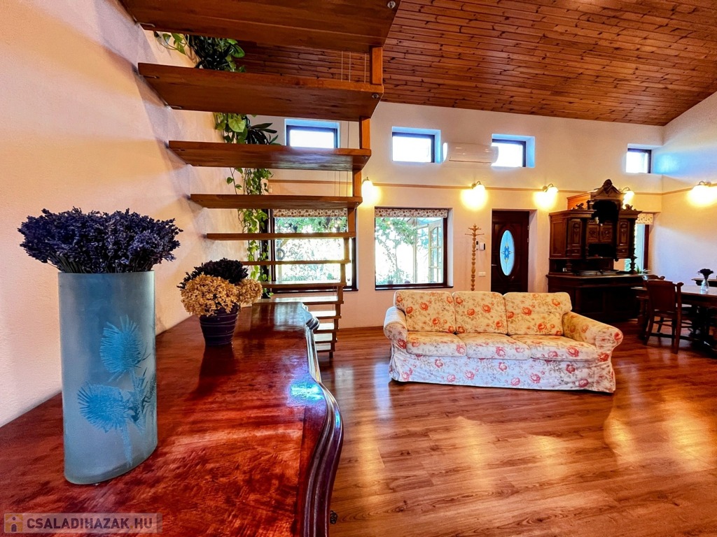 Örökpanorámás, parkosított kerttel rendelkező, 2900 négyzetméteren elterülő, egyedi tervezésű mediterrán stílusú ház eladó, Pécs belvárosától néhány perces autóútra.