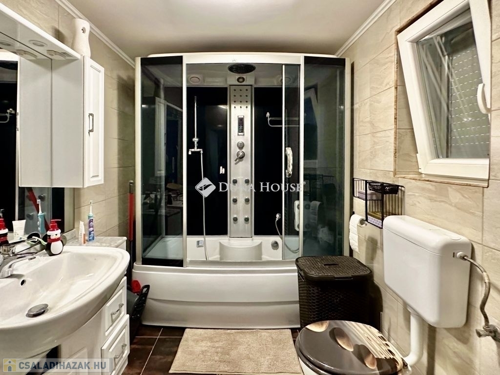 Felújított, tágas családi ház vendégházzal!Eladó egy igényesen felújított, kiváló állapotú családi ház, amely minden szempontból kényelmes és modern otthont kínál. A 248 m²-es főépületben 4 tágas hálószoba és 3 fürdőszoba került kialakításra, így nagyobb családok számára is ideális választás.A ház fűtéséről korszerű gázcirkó rendszer gondoskodik, az energiahatékonyságot pedig egy 16 kW-os napelemrendszer támogatja. A felújítás során új, hőszigetelt nyílászárók kerültek beépítésre, a biztonságról elektromos kapu, riasztórendszer és kamerák gondoskodnak.A 1448 m²-es, rendezett telken egy különálló, 60 m²-es vendégház is található, amely villanyfűtéssel rendelkezik tökéletes lehet vendégek fogadására, otthoni irodának vagy akár kiadásra is.Csendes környezet, modern megoldások és tágas életterek remek lehetőség mindazoknak, akik minőségi otthont keresnek!