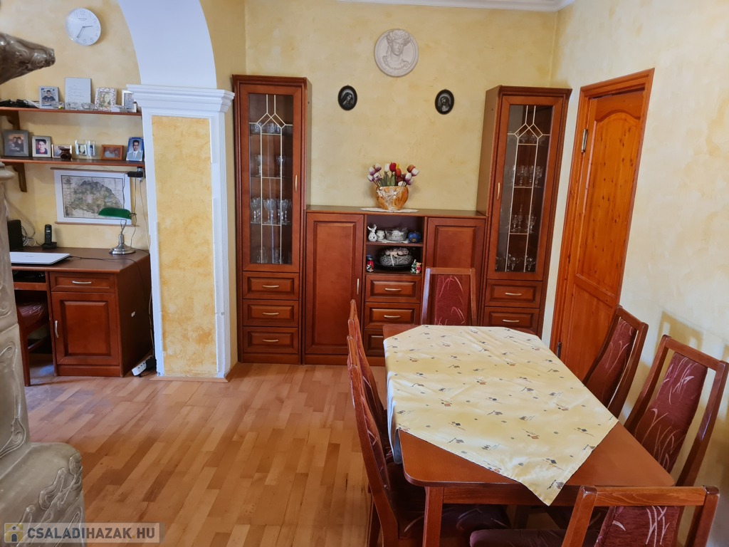 Eladó ház Pécs Tettyei zöld övezetében, csendes környezetben, akár több generációnak is. A megvételre kínált ház 2009-ben teljes körű felújításon és bővítésen esett át. Az alapterülete 172 m2, az alsó szint 55 m2, a felső 84 m2, ezenkívül a felső szinten található egy 13 m2 területű zárt terasz és egy két autós fedett beálló is. Az épület két szintes, az alsó és felső szint külön teljes értékű lakás, külön gáz-, víz- és villanyórával rendelkezik. Az alsó szint két nagyobb méretű szobával, zuhanyfülkével valamint WC-vel és egy hátsó nagyobb tároló szobával rendelkezik. A felső szint nagy hálóval, benne egész falas gardróbbal, boltívvel egybenyíló étkezővel és nappalival ,benne működő cserépkályhával rendelkezik. A konyha tágas, saját tároló helységgel rendelkezik. A hátsó traktusnál helyezkedik el a fürdő, WC és a szauna. A helységeket egy körfolyosó köti össze.