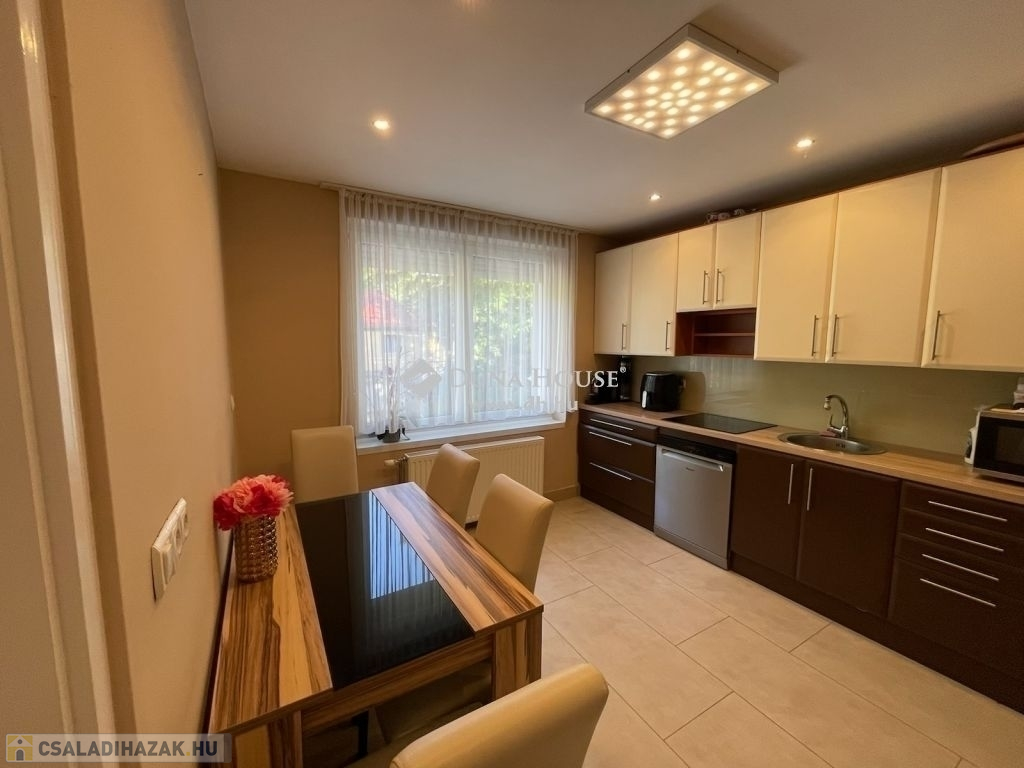 Eladó Pécs Mecsek oldalán, egy 140 m²-es, belső két szintes családi ház, amely két külön lakrészből áll.Az alsó szinten nappali, konyha, két hálószoba és fürdőszoba található, míg az emeleti lakrészben két hálószoba, nappali, amerikai konyha és egy tágas terasz biztosít kényelmes életteret. Az ingatlan egy 1700 m²-es, körbekerített telken helyezkedik el, melynek nagy része panorámás kilátást nyújt Pécs városára.Az évek során folyamatos felújításon esett át, fűtését gázkazán biztosítja, a helyiségek pedig klímával felszereltek. Ideális választás családoknak vagy több generáció számára!Készpénzes vásárlók érdeklődését várjuk.