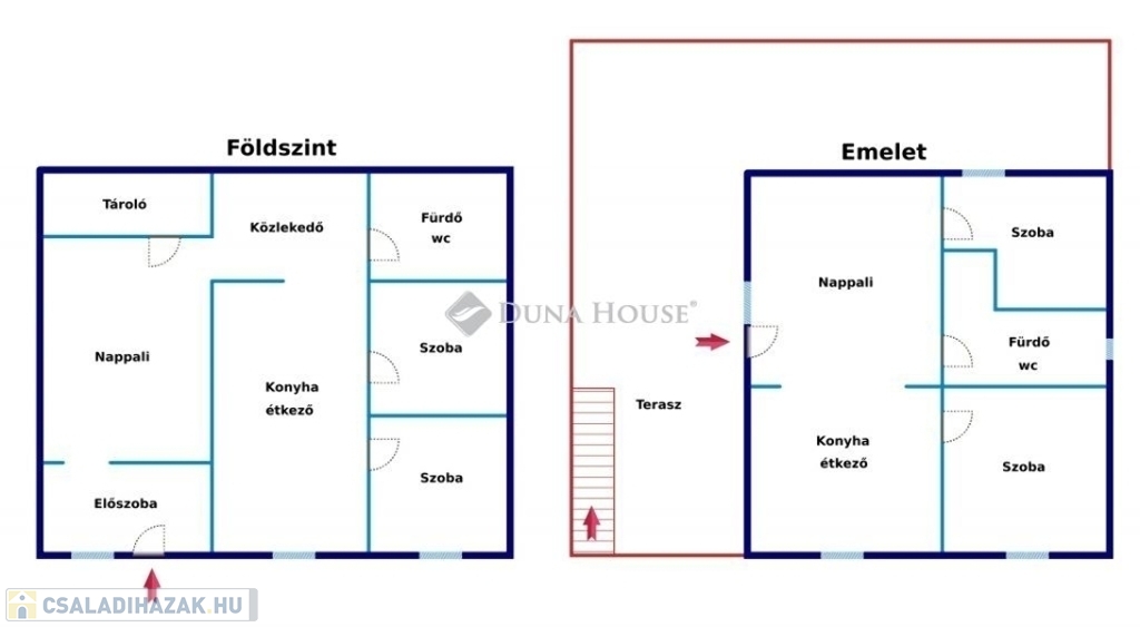 Az alsó szinten nappali, konyha, két hálószoba és fürdőszoba található, míg az emeleti lakrészben két hálószoba, nappali, amerikai konyha és egy tágas terasz biztosít kényelmes életteret.