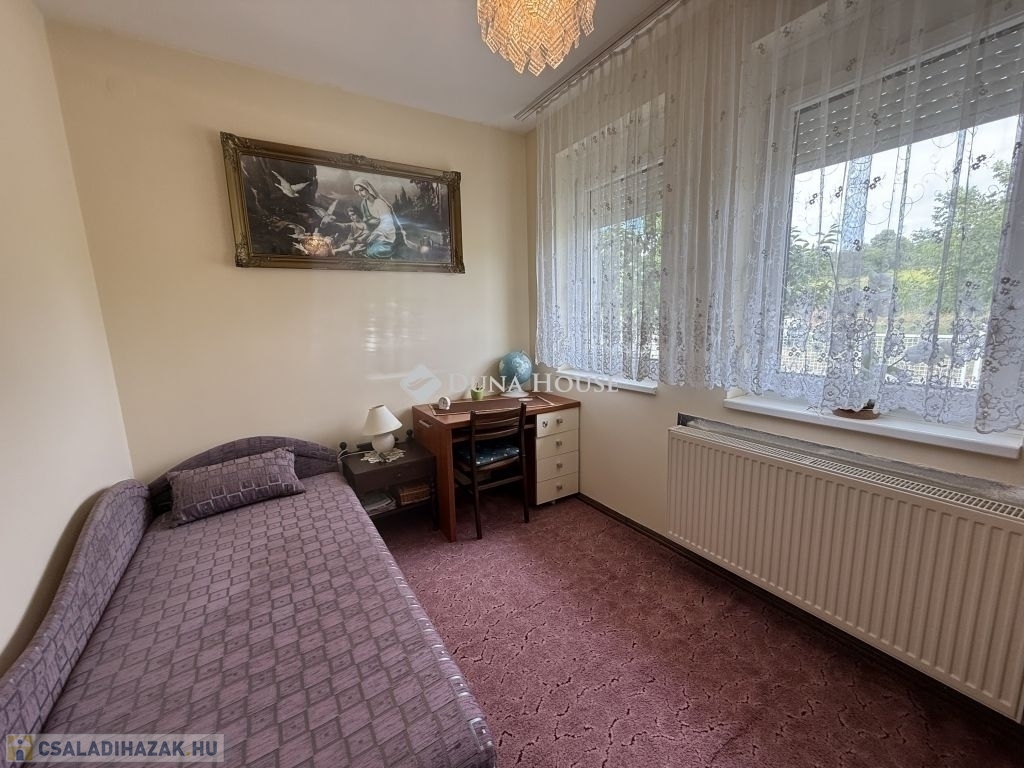Pécs Rózsadomb városrészén, csendes és zöldövezeti környezetben kínálunk megvételre egy 2000-ben épült, kiváló állapotú, 135 m²-es családi házat 1034 m²-es gondozott telken.A felső szinten:Tágas, napfényes nappali hangulatos kandallóval, ahonnan közvetlen kijárat nyílik a teraszra, lenyűgöző panorámáva. Két külön nyíló hálószoba. Fürdőszoba káddal és zuhanyzóval, külön WC és bidé.Az alsó szinten:Egy további szoba, ami vendégszobaként vagy dolgozószobaként is funkcionálhatFürdőszoba WC-vel, tárolóhelyiség, valamint egy boltíves pince, amely ideális borospincének, zöldségek tárolására.A 16 m²-es garázs az épület része, a kertben található egy különálló, 18 m²-es kis ház villannyal, mely tökéletes lehet műhelynek, nyári konyhának.A ház fűtését gázcirkó rendszer biztosítja, de a kandallóval kiegészítve igazán otthonos légkört teremt a téli hónapokban is.Elhelyezkedése kiváló buszmegálló mindössze 5 perc sétára található, így a belváros gyorsan és kényelmesen elérhető.Ez az ingatlan ideális választás azok számára, akik természetközeli, nyugodt környezetben szeretnének élni, mégis közel a város szívéhez.Bővebb információért, megtekintésért várom hívását!