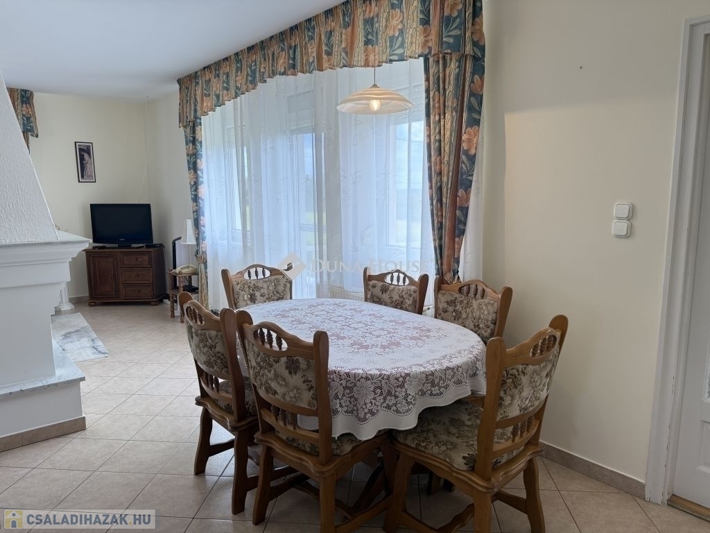 Pécs Rózsadomb városrészén, csendes és zöldövezeti környezetben kínálunk megvételre egy 2000-ben épült, kiváló állapotú, 135 m²-es családi házat 1034 m²-es gondozott telken.A felső szinten:Tágas, napfényes nappali hangulatos kandallóval, ahonnan közvetlen kijárat nyílik a teraszra, lenyűgöző panorámáva. Két külön nyíló hálószoba. Fürdőszoba káddal és zuhanyzóval, külön WC és bidé.Az alsó szinten:Egy további szoba, ami vendégszobaként vagy dolgozószobaként is funkcionálhatFürdőszoba WC-vel, tárolóhelyiség, valamint egy boltíves pince, amely ideális borospincének, zöldségek tárolására.A 16 m²-es garázs az épület része, a kertben található egy különálló, 18 m²-es kis ház villannyal, mely tökéletes lehet műhelynek, nyári konyhának.A ház fűtését gázcirkó rendszer biztosítja, de a kandallóval kiegészítve igazán otthonos légkört teremt a téli hónapokban is.Elhelyezkedése kiváló buszmegálló mindössze 5 perc sétára található, így a belváros gyorsan és kényelmesen elérhető.Ez az ingatlan ideális választás azok számára, akik természetközeli, nyugodt környezetben szeretnének élni, mégis közel a város szívéhez.Bővebb információért, megtekintésért várom hívását!