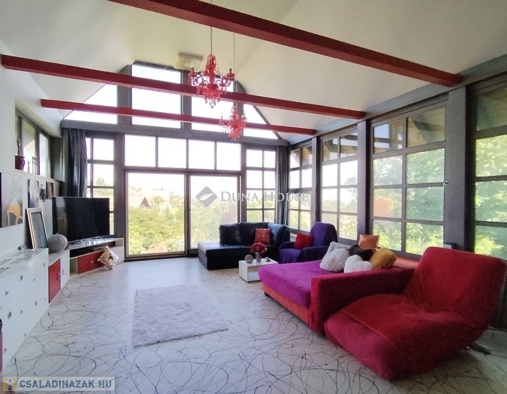 Eladó egy napfényes családi ház Pécs Donátusban, amely egy 1 364 m²-es telken fekszik és 179 m²-es élettérrel rendelkezik. A Csoronikában található családi ház könnyen megközelithető, buszemegállótól 2 percre található! A 3 szintes otthon, mely 1985-ben épült és 2015-ben bővítették, panorámás kilátást kínál a Mecsekre és a TV-toronyra. A ház szigetelve van, új, Viesmann kondenzációs kazánnal és cserépkályhával fűtött, így az energetikai hatékonyság is kiemelkedő.A lakótér szinteltolással megvalósított, a nappali felett galériával kialakítva. A hatalmas, 55 m²-es nappali ablakai állandó fényt és napsütést biztosítanak, így élvezheti a lenyűgöző kilátást. A ház 4 hálószobával rendelkezik, melyek közül 3 klímával felszerelt, biztosítva a komfortos pihenést a nyári hónapokban. Emellett dupla komfortos (egyik zuhanyzóval, másik fürdőkáddal), és van egy különálló WC is.További helyiségek a praktikus mosókonyha, egy tágas gardróbszoba, spájz, szauna és külön tároló helyiség.A kényelmet szolgálja a 2 autónak elegendő, 60 m²-es támfalgarázs mellé tároló is tartozik. Az alagsorban borospince is helyet kapott, mely kitűnő lehetőség a borok érlelésére. A vezetékes víz mellett egy 100 méter mély, ivóvíz minőségű fúrt kút is biztosított. A kertben gyümölcsfák és rózsák biztosítják a természet közelségét, az udvaron pedig egy 50 m³-es ciszterna áll rendelkezésre.Ez a különleges családi ház remek lehetőséget kínál egy gyönyörű otthon kialakítására a Mecsek lábánál, lenyűgöző panorámával. Szívesen várunk minden érdeklődőt, aki szeretne egy igazán egyedi otthont!
