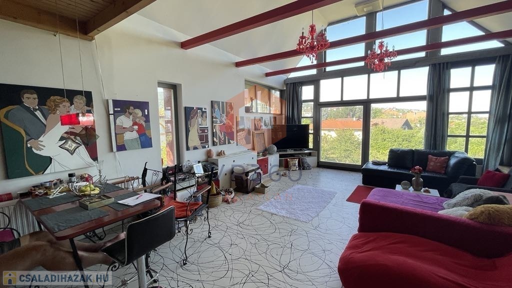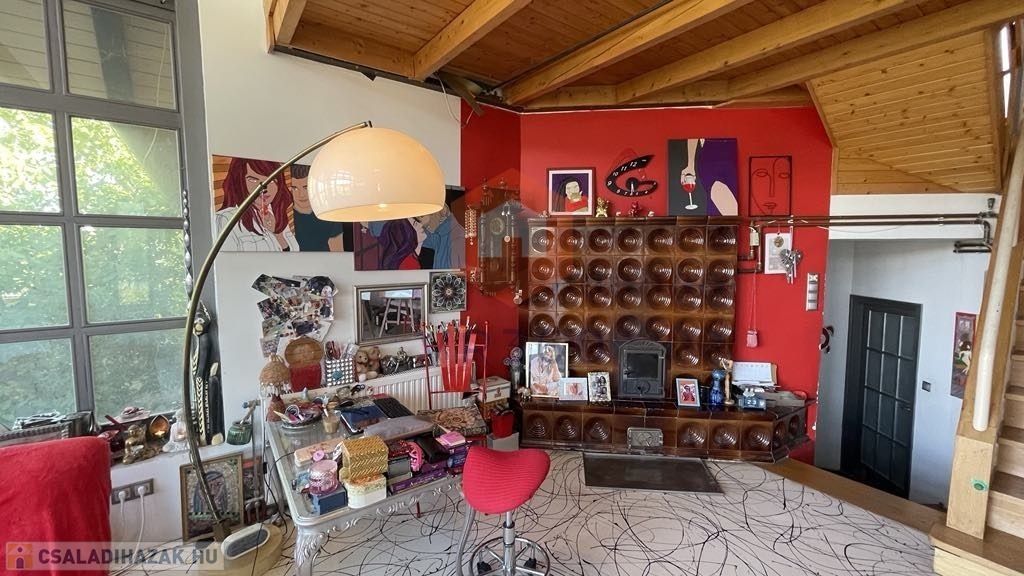 A 250 m2 hasznos alapterület 2 szinten helyezkedik el szinteltolással, galériával kialakítva a nappali felett.