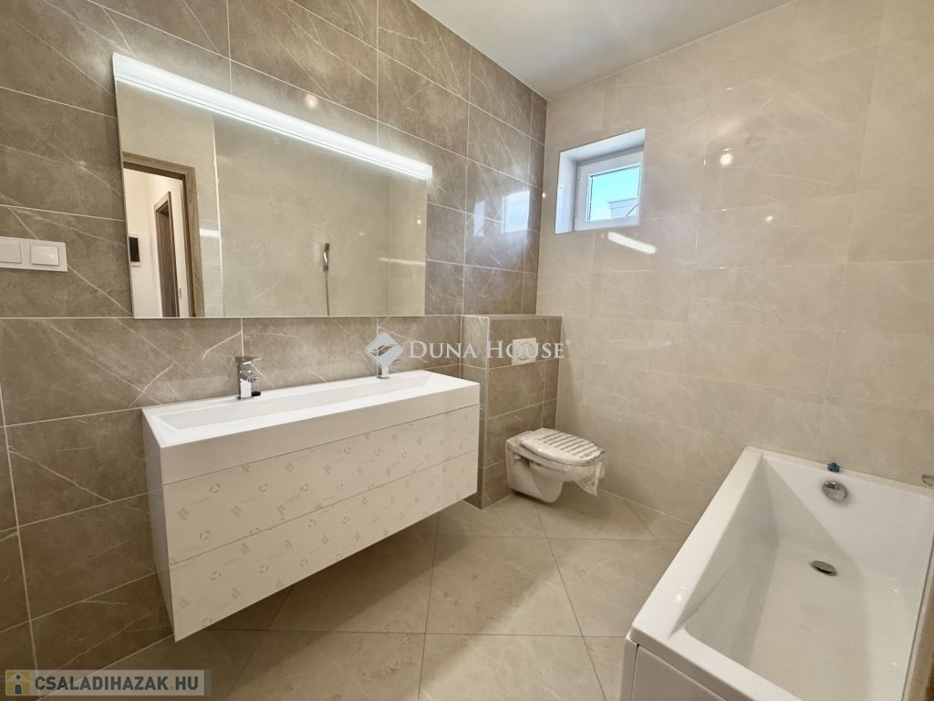 Pécsett Rózsadombon Újépítésű, A+-os minimál stílusú otthon!Egy modern 96m2-es, 3 szobás ingatlant kínálunk eladásra, melyben az amerikai konyha és a tágas nappali együtt teremtik meg az otthon meleg hangulatátAz inghatlan magas minőségben kivitelezett, minden apró részletre odafigyelve.Az alumínium elektromos redőnyök pedig nem csak a praktikumot szolgálják, de a modern megjelenést is erősítikEgy telken lévő 2 db önálló földszintes, modern, lapostetős prémium anyagokkal és műszaki megoldásokkal készült 2 db új lakóház,hőszivattyúval készített melegvízzel és padlófűtéssel, klímával és H tarifával ellátott lakóépület. Kertvárosi, családi házakkal körbevett, csendes zöldövezet.Hőszigetelt,színterezett aluminium redőnyökkel, háromrétegű hőszigetelt üvegezésű nyílászárókkal, saját pergolás gépkocsi beállóval, 8 m3-es földalatti csapadékvíztárolóval ellátva,Parkosított, 200m2-es, saját kerttel, ( utcafronti kerítés előtt 3 db gk. számára parkolási lehetőséggel) kaputelefonnal, távműködtetésű kapuval ellátott ingatlan.Az ingatlan újépítésű, a vételár után 5%-os ÁFA visszaigénylésére van lehetőség.Ne hagyja ki ezt a kivételes lehetőséget!Bővebb információért megtekintésért, várom hívását!