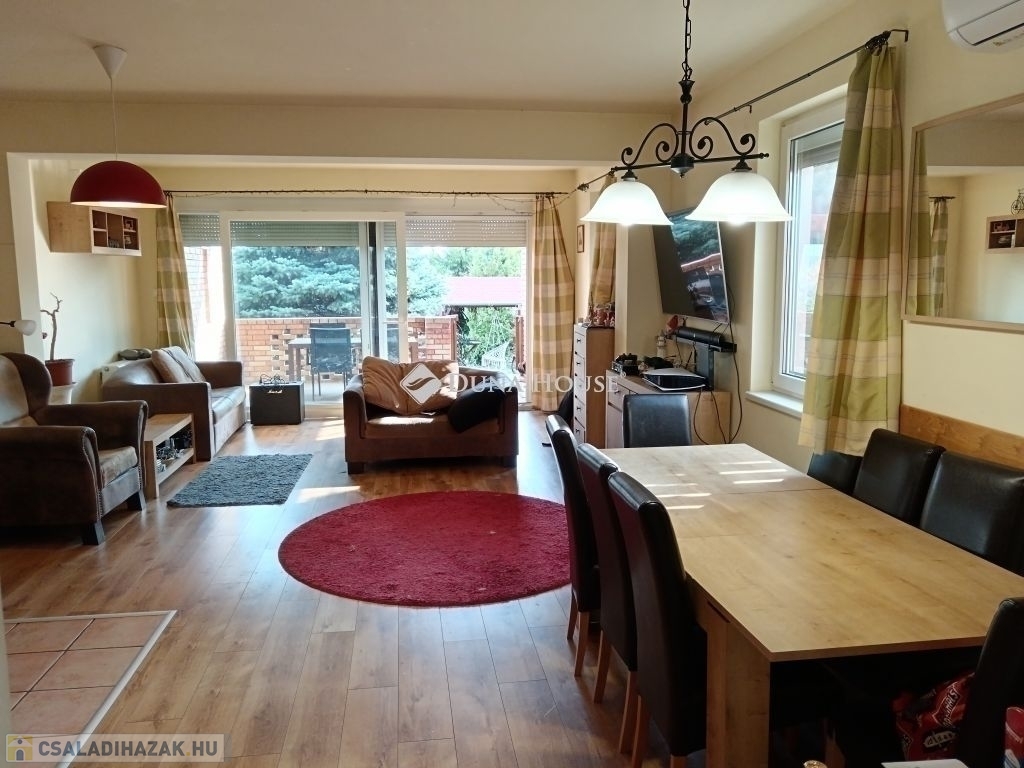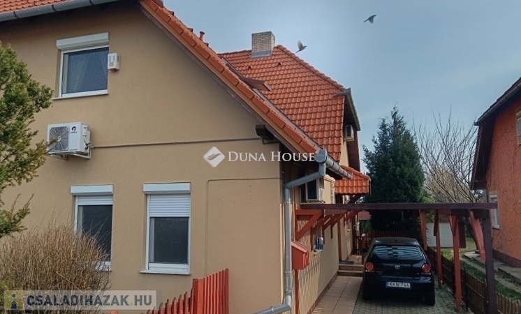 Tágas ikerház 600 m² telken eladó PécsÚjhegy kedvelt utcájában !Eladásra kínálunk egy kiváló adottságokkal rendelkező, két szintes sorházi otthont Pécs Újhegy egyik csendes, rendezett utcájában.Az ingatlan főbb jellemzői: 600 m²-es, sík telek összesen 140 m² lakóterület, melyből: Földszint: 80 m² Tetőtér: 60 m² Nappali-konyha-étkező 5 szoba+beépített gardrób 2 fürdő, 2 WC Építés 1991-ben. Jelentős átépítés és felújítás 2007 Nappaliból a belső udvarra nyíló 15 m²-es fedett teraszTovábbi jellemzők gáz cirkó fűtés vízteres gázkazánnal mindkét szinten fürdőszoba és WC mindkét szinten hűtő-fűtő légkondicionálók jó állapotú burkolatok gépesített konyha műanyag nyílászárók+redőny+szúnyogháló nappaliban teljes falszélességben tolóajtó+ motoros redőny térkövezett gépkocsibeálló 2 autó részére épített kerti grillező+ kerti tároló külső szigetelés kiépített riasztórendszer, biztonsági szolgáltatóhoz bekötveAz ingatlan ideális választás azoknak, akik tágas otthont keresnek terasszal és kerttel egy nyugodt, mégis jól megközelíthető városrészben.További információért vagy megtekintési időpontért keressen bizalommal a megadott elérhetőségeimen.