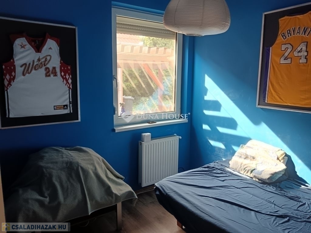 Tágas ikerház 600 m² telken eladó PécsÚjhegy kedvelt utcájában !Eladásra kínálunk egy kiváló adottságokkal rendelkező, két szintes sorházi otthont Pécs Újhegy egyik csendes, rendezett utcájában.Az ingatlan főbb jellemzői: 600 m²-es, sík telek összesen 140 m² lakóterület, melyből: Földszint: 80 m² Tetőtér: 60 m² Nappali-konyha-étkező 5 szoba+beépített gardrób 2 fürdő, 2 WC Építés 1991-ben. Jelentős átépítés és felújítás 2007 Nappaliból a belső udvarra nyíló 15 m²-es fedett teraszTovábbi jellemzők gáz cirkó fűtés vízteres gázkazánnal mindkét szinten fürdőszoba és WC mindkét szinten hűtő-fűtő légkondicionálók jó állapotú burkolatok gépesített konyha műanyag nyílászárók+redőny+szúnyogháló nappaliban teljes falszélességben tolóajtó+ motoros redőny térkövezett gépkocsibeálló 2 autó részére épített kerti grillező+ kerti tároló külső szigetelés kiépített riasztórendszer, biztonsági szolgáltatóhoz bekötveAz ingatlan ideális választás azoknak, akik tágas otthont keresnek terasszal és kerttel egy nyugodt, mégis jól megközelíthető városrészben.További információért vagy megtekintési időpontért keressen bizalommal a megadott elérhetőségeimen.