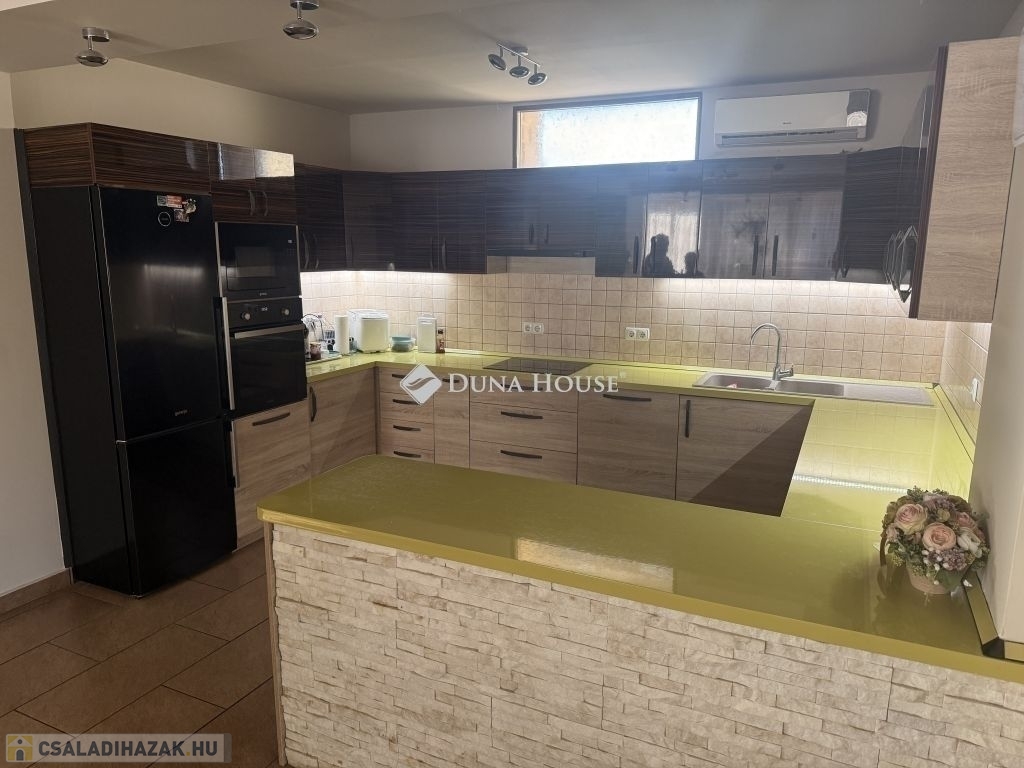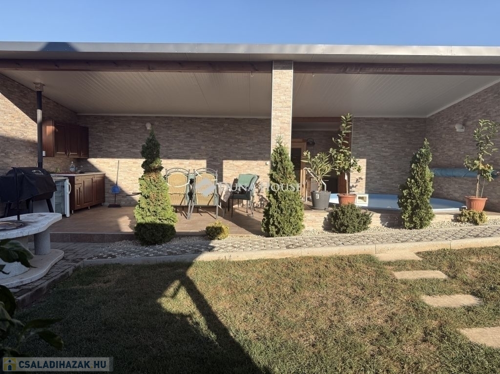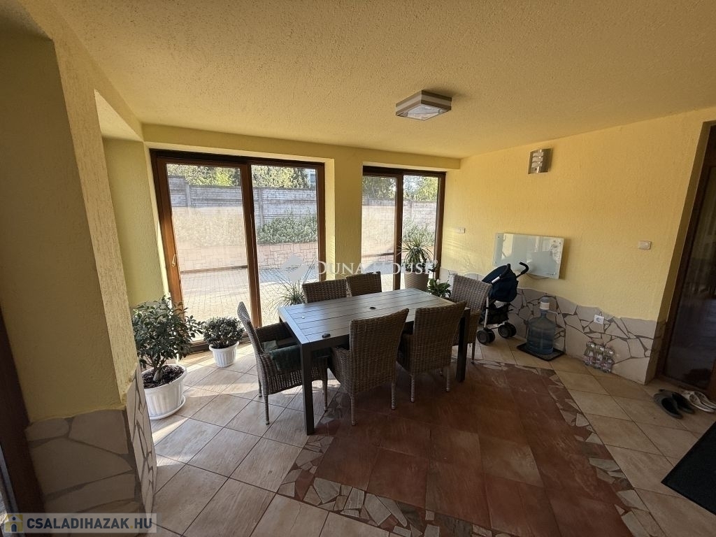 Eladásra kínálunk egy 2011-ben épült, bruttó 220 / nettó 195 négyzetméteres, szigetelt családi házat Pécs-Somogy városrészében. Ez a téglaépítésű ingatlan modern fűtési rendszerekkel, köztük gáz cirkóval van ellátva, így biztosítja a minden évszakban való kényelmes életvitelt.A ház energiatakarékos megoldásai közé tartozik a napelem rendszer, valamint a kényelmes és gazdaságos vízhasználatot egy BWT vízlágyító és az öntözéshez használt ásott kút teszi lehetővé.A földszinten élvezhető a padlófűtés nyújtotta kényelem, mely villany és gáz kazánnal egyaránt üzemeltethető, míg az emeleten radiátoros fűtés gondoskodik a melegről.A földszinten egy tágas amerikai konyhás nappali várja az új tulajdonosokat, mellette egy hálószoba, gardróbszoba, fürdőszoba, háztartási helyiség, spájz és egy WC kapott helyet. A ház kialakítása olyan, hogy az emeleti rész külön bejárattal is rendelkezik, ahol egy másik amerikai konyhás nappali, egy plusz fürdőszoba és egy különálló szoba található. Ez a kialakítás lehetővé teszi, hogy akár két generáció vagy két család is kényelmesen éljen együtt, mégis külön.A külső teret egy 40 négyzetméteres fedett terasz, valamint egy további kültéri terasz színesíti, ahol egy fűthető medence és egy infra szauna is helyet kapottHa kényelmes, modern és energiatakarékos otthont keres Pécsen, akkor ez a családi ház tökéletes választás lehet. Kérdéseivel bátran forduljon hozzánk, készséggel állunk rendelkezésre!
