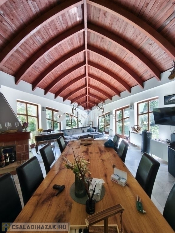 Eladó különleges, medencés családi ház Pécsen, a Mecsek keleti oldalán!Háromszintes, nettó 240 m²-es otthon, 2132 m²-es, parkosított telken. A kert egyik legnagyobb előnye az ellenáramoltatós, 1,7 méter mély medence, valamint a hangulatos pavilon, ami ideális helyszín a közös kerti programokhoz.-Tágas, világos nappali galériával és 5 méteres belmagassággal-Kandalló, ami otthonos, meghitt hangulatot teremt-3 külön nyíló hálószoba, 1 félszoba-A tetőtérben 2 szoba található, ebből az egyik már kialakított, a másik pedig beépíthető akár plusz hálóként vagy dolgozóként is használható-Egy nagyobb alagsori garázs autó számára, valamint egy kisebb, ami motor, kerékpár vagy tárolás céljára ideális-Udvari beállási lehetőség több autónak-Buszmegálló kb. 400 méterre, így a tömegközlekedés is könnyen elérhetőEz az ingatlan azoknak szól, akik nyugodt, zöld környezetben szeretnének élni, de nem szeretnének lemondani a város közelségéről és a kényelmes, nagyvonalú élettérről.Érdeklődés vagy megtekintés esetén hívjon bizalommal!