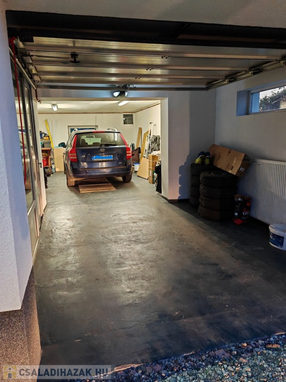 A földszinten tágas, 34 m²-es garázs található, amely elektromos kapuval van ellátva és kényelmesen elfér benne két autó is. További tárolók is rendelkezésre állnak, jelenleg egyik helyiség vendégszobának berendezve.