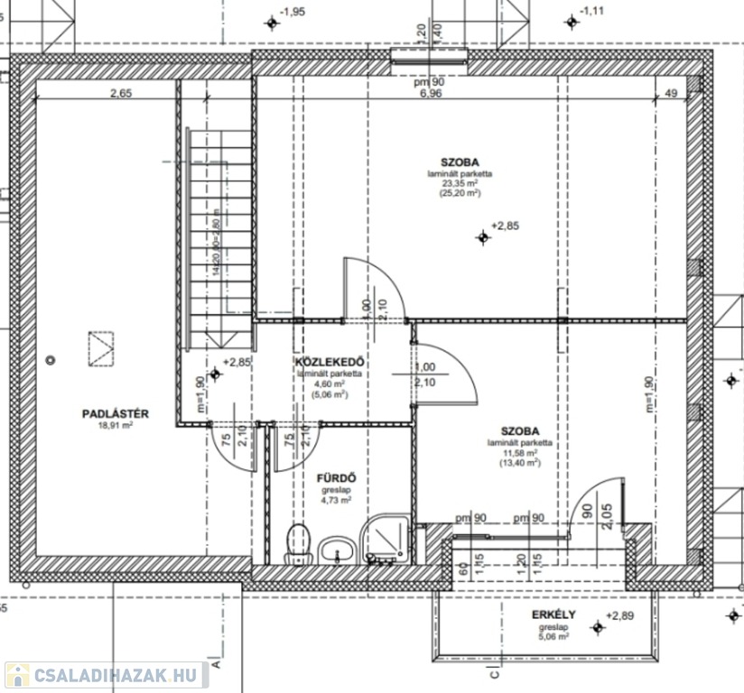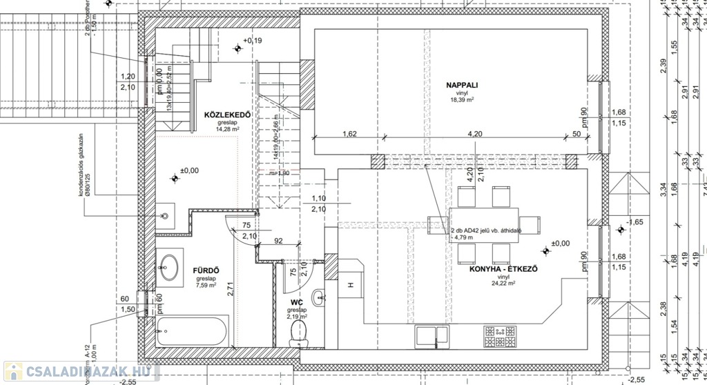 Az alsó szinten tágas nappali, konyha és étkező található egy légtérben, a tetőtérben pedig 2 külön bejáratú szoba kapott helyet. Mindkét szinten fürdőszoba és WC teszi kényelmessé a mindennapi életet.