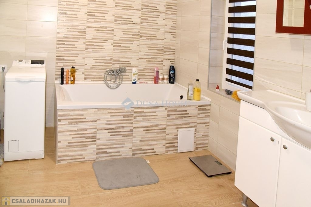A Pécs Rózsadomb gyorsan fejlődő részén lévő eredeti házból mindössze a falak maradtak, ehhez lett hozzáépítve amire 15 cm-es szigetelés lett felrakva. Új elektromos -, gáz-, és vízvezetékek, új gáz(cirkós) fűtési rendszer modern kondenzációs kazánnal, külső és belső nyílászárókkal, új tető. A ház belül is modern új belsőt kapott, igény esetén még egy szoba kialakítható. A ház alsó szintjén két állásos garázs, tároló, amiből egy téglával kirakott pincébe lehet lejutni. A felső két szinten teljes klíma kiállás (vezetékelve, csövezve) ahova hűtő-fűtő klíma szerelhető.