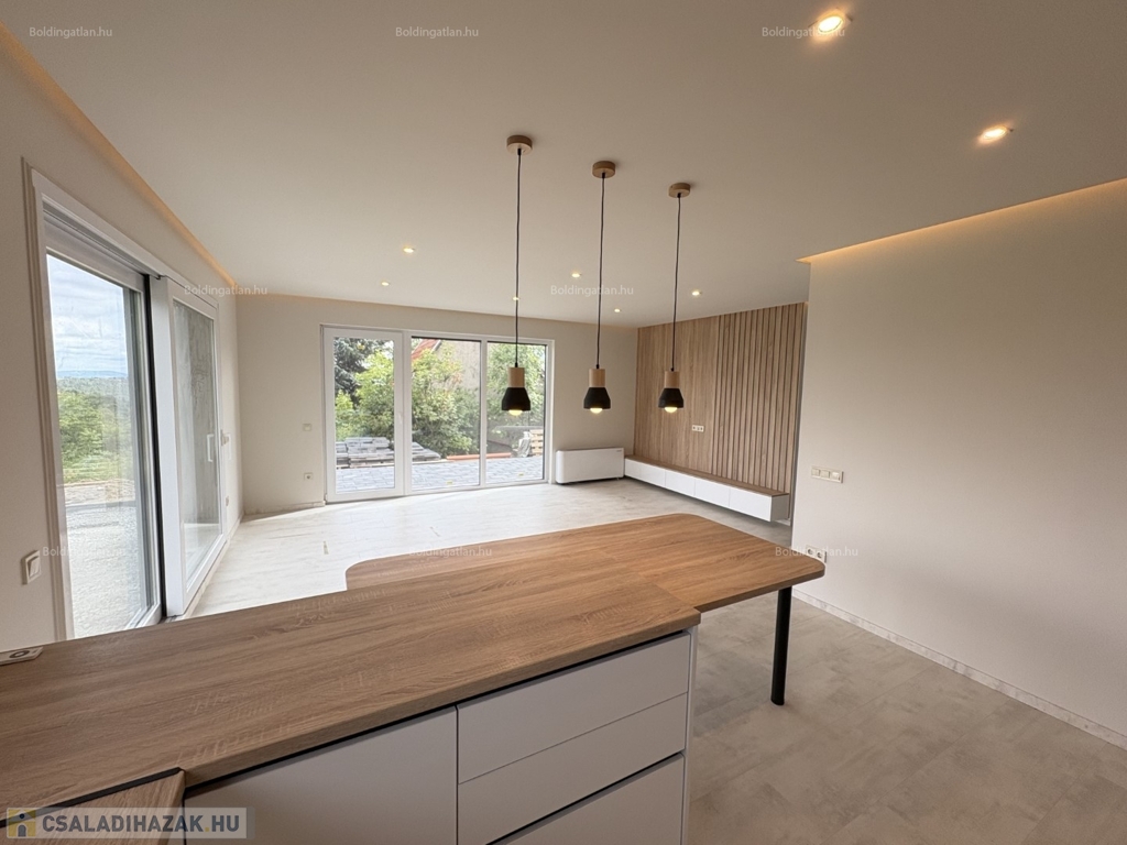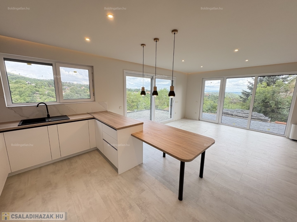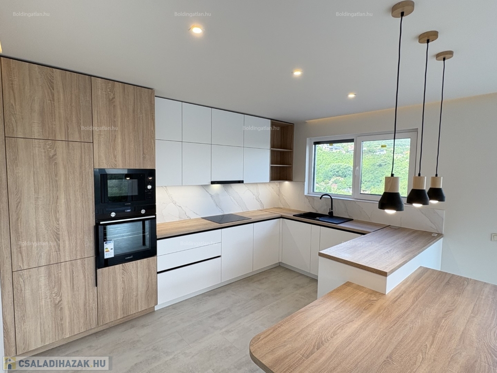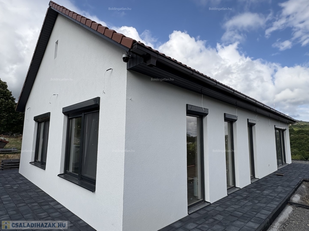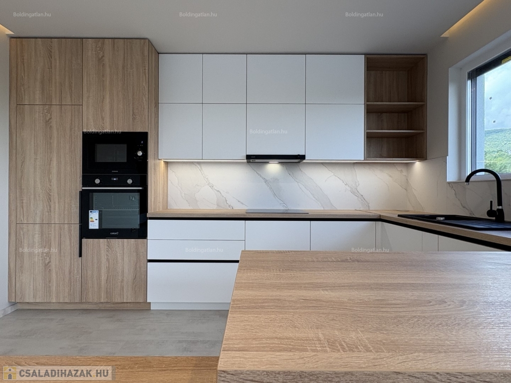 Pécsen a Deindol-Kismélyvölgy hegyhát dűlő-ben páratlan panorámával rendelkező 115 m2-es, - új építésű - családi ház eladó. A Pannon-Wolf által gyártott elemekből épült családi házban tágas és világos, szép panorámájú nappali-étkező-konyha beépített konyhabútorral és gépekkel(Cata elszívó, elektromos főzőlap, elektromos sütő, Nodor mikró, Cata hűtőszekrény és mosogatógép), közlekedő, 3 szoba - az egyikben beépített szekrény is van, továbbá elegáns fürdőszoba zuhanyzóval és fürdőkáddal, illetve dupla mosdó tállal és wc-vel, egy háztartási helyiség, valamint a bejáratból nyíló előszoba és egy wc-kézmosó helyiségek kerültek kialakításra.