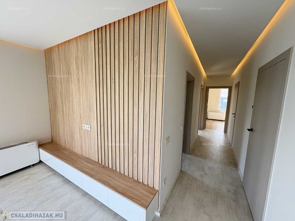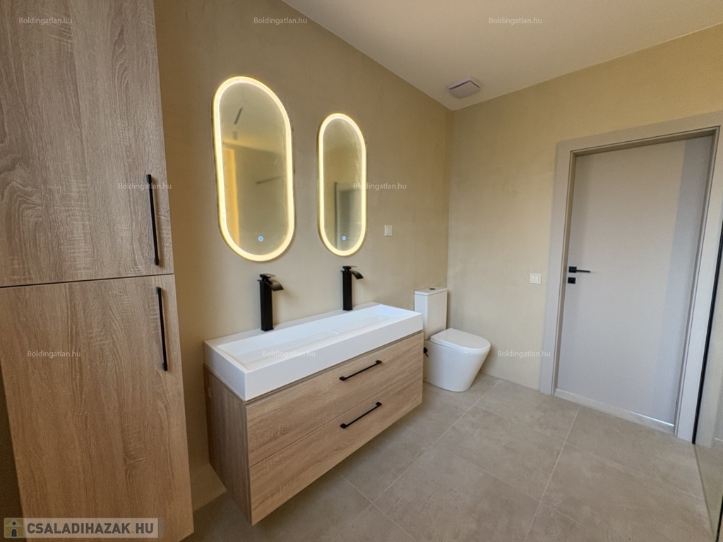 A fűtésről és hűtésről hőszivattyú gondoskodik, a hideg burkolatú helyiségekben padlófűtéssel, a szobákban Fan-Coil rendszerekkel. A könnyűszerkezetes Wolf rendszerű ház, kiváló hő és hangszigetelő adottságainak köszönhetően az energiatakarékosság garantált. A kényelmet tovább fokozzák a távirányítással működtetett alumínium redőnyök, a 3 rétegű nyílászárók, a modern beltéri ajtók, az otthon hangulatát mennyezetbe épített hangulatvilágítás tovább fokozza, valamint vízlágyító is felszerelésre került. Telek: 900 m2. Amennyiben az ingatlan felkeltette az érdeklődését, kérem hivatkozzon a 893. számú ajánlatra! Irodánk címe: Kaposvár Irányi D. u. 9.