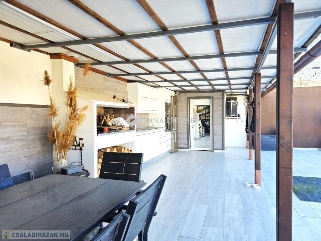 MEDENCÉS CSALÁDI HÁZ!!! Pécs gyárvárosi részén eladó egy pár éve teljeskörűen felújított, nettó 100 nm alapterületű, 2 szintes, jelenleg amerikai konyha-nappali+ 4 szoba elosztású, sok extrával felszerelt, gáz kazánnal fűtött, klímás, tégla családi ház, épített medencével, nyári konyhával, 160 nm-es műhely garázzsal, alagsori tárolókkal, duplagarázzsal, térkövezett, udvari beálókkal, 1000 nm-es parkosított telken.Az ingatlant korszerűsítették és a következő extrákkal szerelték fel:- Új Medence 3,6x5,8 méretben- Homlokzaton 10 cm grafitos szigetelés- 22 m-es téglával körberakott, dupla aknás, elektromos bekötéssel rendelkező kút- Hörmann garázskapuk + motorok- 2 db hűtő-fűtő klíma- Gáz cirkó + vegyes tüzelésű & elektromos kandalló - padlófűtés és radiátorok- Ipari 8 cm-es térkő, 160 m2- új elektromos hálózat és vízvezetékek- Vízálló padló burkolatok- Kamera és riasztó rendszer- épített kerítés- Tető 2,5 éve új lécezést és vízzárást kapottA teljes berendezés külön alku tárgyát képezi!Az ingatlan cég telephelynek is kiválóan alkalmas, a lakóház részén ügyféltér és irodák kialakíthatók, udvarán 160 nm térkövezett parkoló, 160 nm műhely és 2 állásos garázs is megtalálható!I.ár: 129,9M Ft