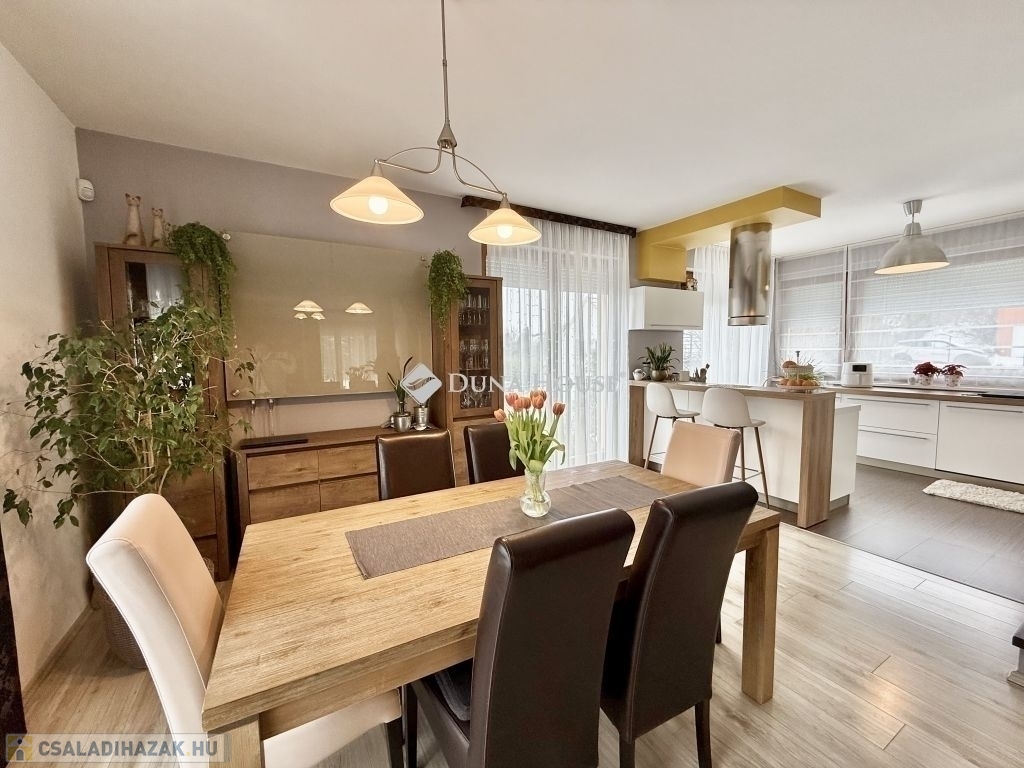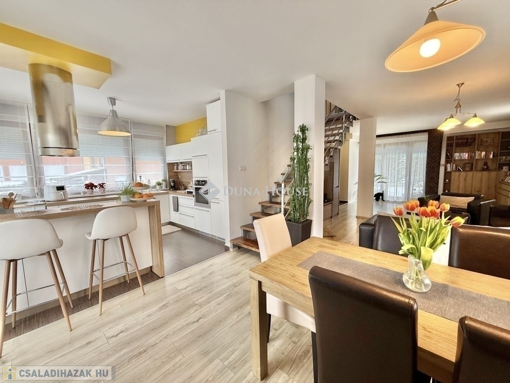 Családi ház hangulatú, tágas otthon eladó a csendes, zöldövezeti Donátusban!Pécs egyik legkedveltebb, panorámás részén, Donátusban, a Csoronika dűlőben kínálunk megvételre egy 2010-ben épült társasházi ingatlant, amely kialakításának köszönhetően teljes mértékben családi ház érzetét nyújtja ez a ritka kombináció igazán különlegessé teszi!A 124 m²-es, kétszintes, amerikai konyhás nappali + 4 SZOBÁS otthon ideális választás nagyobb családok számára is. Az ingatlan tágas, világos terekkel rendelkezik, kiváló elosztású és kertkapcsolatos.Alsó szint:-Tágas, napfényes amerikai konyhás nappali-Közvetlen kijárat a parkosított, kertre és fedett teraszra-Egy hálószoba, melyhez saját zuhanyzós fürdőszoba és WC tartozik-háztartási helyiség. Felső szint:-3 külön nyíló szoba-Két szobából kijárat a 25 m²-es, panorámás teraszra-Fürdőszoba-Külön WCMűszaki jellemzők:-Kondenzációs gázkazános fűtés-Riasztórendszer-3 db klíma. Az ingatlan csendes, nyugodt, kiváló donátusi környezetben található, gyönyörű panorámával tökéletes választás azok számára, akik természetközeli, mégis városhoz közeli otthont keresnek.Igény esetén megvásárolható egy önálló, 17 m²-es garázs, melynek ára: 10.000.000 Ft.