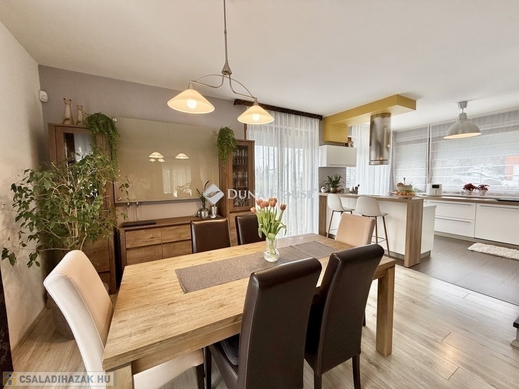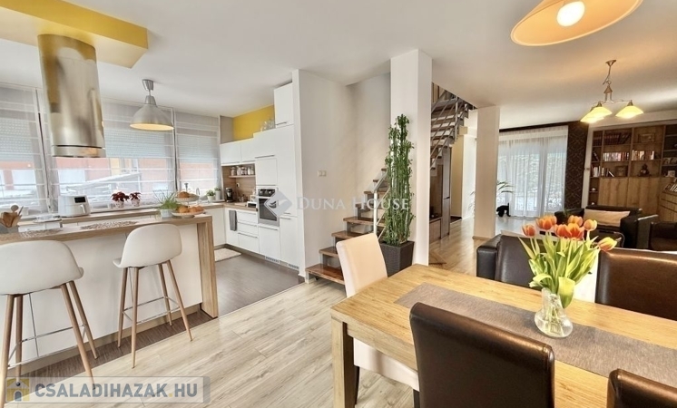 A 124 m²-es, kétszintes, amerikai konyhás nappali + 4 SZOBÁS otthon ideális választás nagyobb családok számára is. Az ingatlan tágas, világos terekkel rendelkezik, kiváló elosztású és kertkapcsolatos.