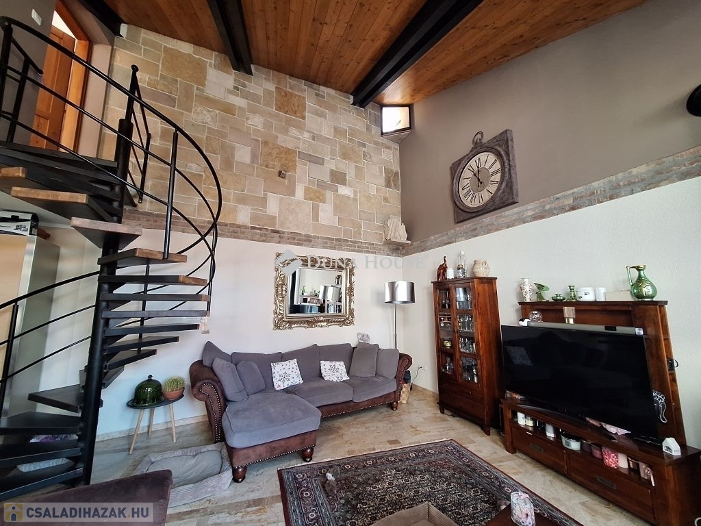 ===Egyedi stílusú mediterrán ház eladó====Vannak, akik álmodnak a tökéletes otthonról....és vannak, akik meg is veszik !Csatlakozz a kiváltságos 1%-hoz, akik reggelente nem dudálásra ébrednek!!!-Tettye védett részén található, zsákutcában- modern egyedi stílusú,mediterrán hangulatú- 2004-ben épült- amerikai konyha nappalis 3 hálószobás családi ház,kis mediterrán udvarral- nappaliból közvetlen kapcsolt van a kis udvar felé, a speciális ajtó segítségével a nappali teljesen nyitottá tehető- tetőterasz is kialakitható- Süttői márvány kőburkolatok takarják el a lenti szint padlófűtését. Fent radiátorok vannak,gáz cirkó fűtéssel, Buderus kazánnal- napelemes 5,6 kw mely bővithető 7 kw-ra is akár- három klímával- központi porszívó,- vízlágyító,- riasztó,- szauna, - modern konyhabútor.- lenti szoba déli falán művészek készítették a különleges ablak üveget.- emeleti közlekedők egy része járó rács, ami átengedi a fényt a két szint közöttKülönleges otthonra vágysz?Hívj!