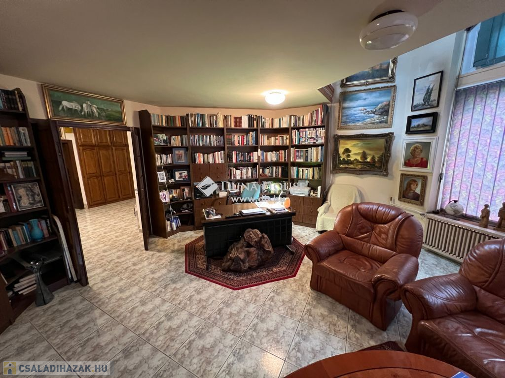 Eladó családi villa Pécs Ürögi városrészén!Pécs egyik legkedveltebb villanegyedében található a Mecsek lábánál, festői környezetben, csendes zsákutcában levő, Bachmann Zoltán Ybl -díjas építész által tervezett 3 szintes örök panorámás telken elterülő családi villa eladó. A villában található: 3 hálószoba (2 hálógaléria), 2 nappali, 2 fürdőszoba, +1 mellékhelyiség, konyha, étkező, garázs, pince, alkotóműhely ahol ezidáig is remek alkotások születtek. A pihenéshez elengedhetetlen a nagy terasz amelyből itt 2 is rendelkezésre áll. Az udvarban napkollektorral fűtött úszómedence, szaunaház, grillterasz található. A ház klimatizált és padlófűtéssel ellátott, ami későbbiekben alkalmas akár hőszivattyús fűtés használatához is. A telek 1464 nm, mely arborétum szerűen betelepített növényzettel díszítet. A ház kellemes klímáját az évtizedes fák, és a kert növényei biztosítják. Az ingatlanhoz 1 különálló és egy házban található garázs tartozik, ill. fedett gépkocsi beálló is használható, így összesen 4 autó számára van parkolási lehetőség.Ismerje a Bánkuti villát, ne hagyja ki ezt az egyedülálló lehetőséget! Ha felkeltette érdeklődését az ingatlan vagy szeretné megtekinteni, keressen bizalommal!