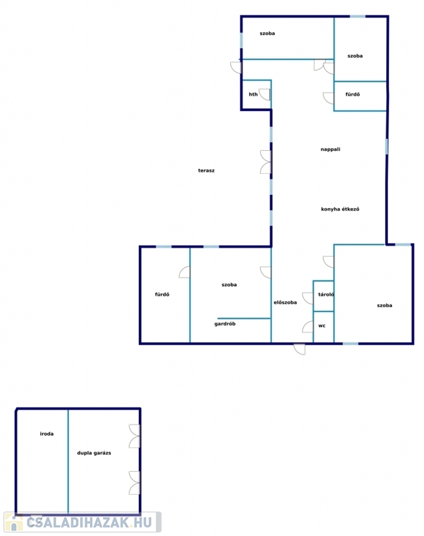 Az ingatlanhoz tartozik egy két autó beállásos garázs, valamint egy irodahelyiség.