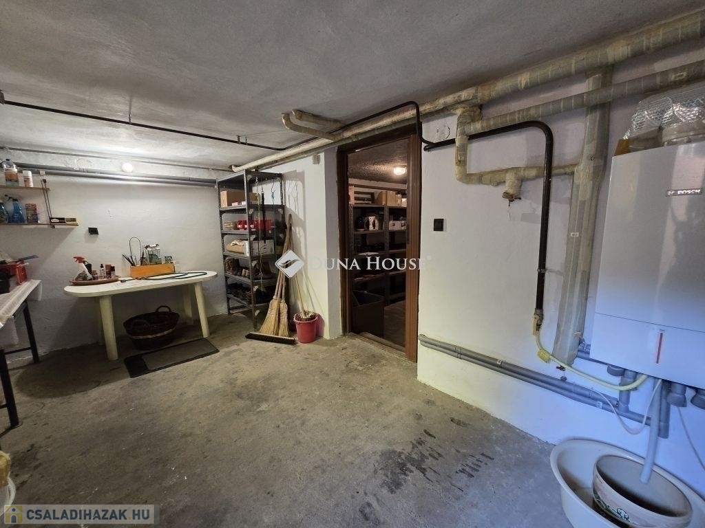Az alsó szinten pince, tároló, valamint egy külön nappali (hal) található, amely kiváló klímájú, köszönhetően az alápincézett kialakításnak.