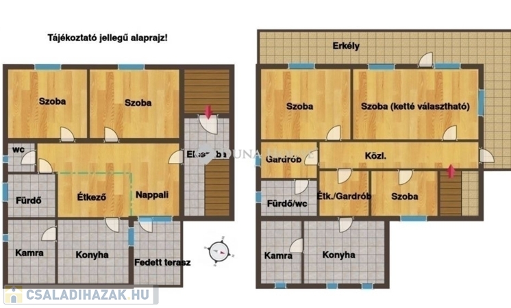 Az ingatlan két bejárattal rendelkezik, így a földszinti helyiségek akár irodának, rendelőnek vagy vállalkozási célra is kiválóan hasznosíthatók.