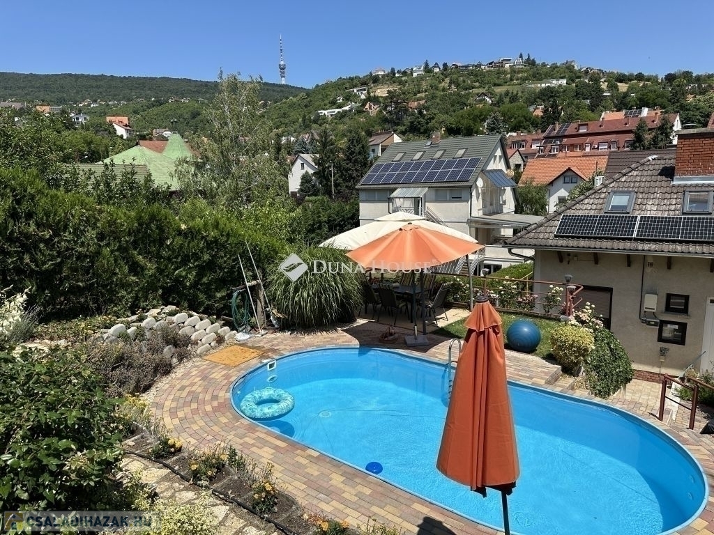 Kivételes lehetőség a Bálicsi úton medencés ház Pécs egyik legkeresettebb részén!Eladásra kínálok egy medencés, háromszintes, 200 m²-es, dupla garázzsal rendelkező sorházat a belvárostól mindössze pár percre, a Bálicsi úton. Az ingatlan ideális választás azok számára, akik értékelik a tágas tereket, a modern kényelmet és a természetközeli életérzést.Az ingatlan főbb jellemzői:Nagy medence, melyből csodálatos panoráma nyílik a TV-toronyra és a Mecsekre.34,45 m²-es keleti tájolású panorámás terasz, amely kiváló helyszín a reggeli kávéhoz vagy baráti összejövetelekhezÁsott kút a kertben, amely az automata öntözőrendszert tápláljaHőszivattyús fűtés (2 éve kiépítve) + tartalék gázkazánSzinte nulla rezsi a korszerű 12,3 kW-os napelemrendszernek köszönhetően (üzembe helyezés: 2022.12., szaldó: 2032.12-ig, 2024-ben 12,6 MWh termelés!)5 szoba és 2 fürdőszobaGondozott díszkert és konyhakert kertész által karbantartvaModern elektromos hálózat: új konnektorok, biztosítékok kint és bent, 3x20A teljesítményElektromos redőnyökNagy sebességű LAN hálózat minden szobában kiépítveKlímák a tetőtérben, a ház alsó szintje nyáron is kellemes hőmérsékletű, így légkondi nélkül használhatóPrémium LED design világítás minden helyiségbenEz az ingatlan egyszerre kínál luxust, kényelmet és költséghatékony fenntarthatóságot. A keletre néző terasz egész nyáron hűvös, a hatalmas medence pedig garantálja a nyári kikapcsolódást.