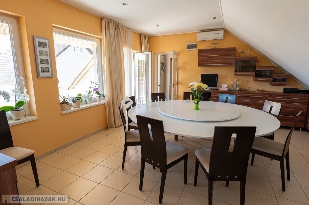 IGÉNYES TÖBBGENERÁCIÓS CSALÁDI HÁZ, vagy HÁROM LAKÁSOS TÁRSASHÁZZÁ ALKÍTHATÓ LEHETŐSÉG!Pécs-Nagyárpád csendes mellékutcájában eladó !Ha Ön egy olyan otthont keres, amely kényelmet, modern technológiát és fenntarthatóságot kínál egy csendes, családbarát környezetben, akkor ez a családi ház tökéletes választás lehet. Ne hagyja ki ezt a rendkívüli lehetőséget tegye meg az első lépést új, álmai otthona felé még ma!A ház igényes kialakítása és a kényelmet szolgáló funkciók, mint a klimatizálás és a modern fűtésrendszer, egész évben kellemes lakókörnyezetet biztosítanak. A biztonság érzetét tovább növeli a telepített kamera rendszer. Az ingatlanhoz tartozik 3 garázs is, ami különösen előnyös azok számára, akik értékelik a kényelmes parkolást és extra tárolóhelyet keresnek az autóiknak vagy egyéb hasznosítható térre van szükségük.Az ingatlan 386 m2, 3 szintes, és egy 714 m2-es telken található. A földszinten egy 3 szoba + télikert elosztású lakás, míg az emeleten egy 4 szobás otthon lett kialakítva. A lakásokhoz összesen 3 garázs tartozik, 1 az alagsorból megközelíthető, 2 pedig a földszintől. Az ingatlan összközműves, 380v ipari árammal , 7,5 KW naperőművel ellátott . A fűtés energiatakarékos BRÖJTE cirkó gázkazánnal megoldott, de vegyes tüzelésű kazán is rendelkezésre áll. A további kényelemről klíma, kandalló gondoskodik. Az épületben összesen 8 szoba, 2 konyha, 3 fürdő-wc, egy kazánház , egy mosókonyha, valamint egy raktár található.A ház két generációs kialakítása lehetővé teszi, hogy a család különböző nemzedékei kényelmesen, mégis önállóan élhessenek együtt. A korszerűsítés során a legmodernebb technológiák kerültek bevezetésre, amelyek nem csupán a kényelmet, de a fenntarthatóságot és az energiatakarékosságot is szem előtt tartják. A 7,5kW teljesítményű napelem rendszer hozzájárul a környezettudatos életvitelhez és jelentősen csökkenti az üzemeltetési költségeket, garantálva ezzel a 0 áramszámlát.Nézzük meg együtt! Ne hagyja ki ezt a különleges lehetőséget, hogy az Öné legyen ez a kivételes otthon, ahol a modern technológia és a kényelem tökéletes összhangban van. Keressen bizalommal további információkért és a megtekintés miatt!