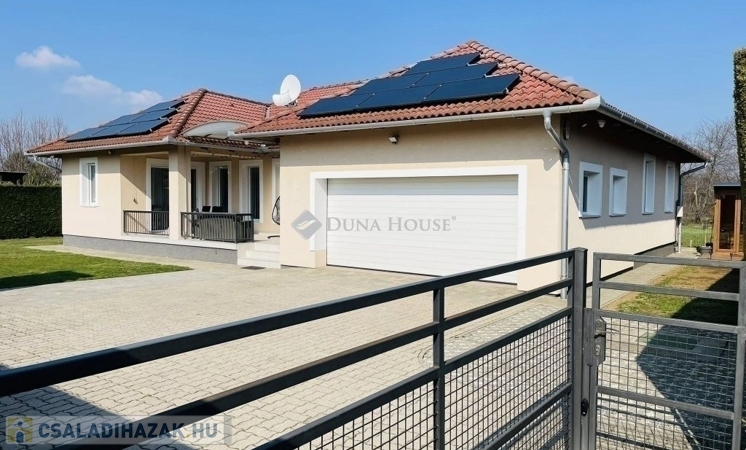 Modern családi ház PécsÚjhegyen napelemmel és dupla garázzsalPécs Újhegy csendes részén, a Barázda utcában eladó egy 2010-ben épült, egyszintes családi ház, amely ideális választás lehet családok számára.164 m² összterület 132 m² lakótér 32 m² kétállásos garázsHelyiségek: amerikai konyhás nappali étkezővel 3 hálószoba gardróbszoba 2 fürdőszoba + vendég WC kamra és háztartási helyiség 20 m² fedett teraszFőbb műszaki jellemzők:Viessmann gázkazánpadlófűtés és radiátorvízteres kandallóHoneywell helyiségenként szabályozható fűtés5,2 kW klíma3x25 Amper 7 kW napelem rendszer szaldó elszámolással 2030.12.31-igExtrák: elektromos alumínium redőnyök elektromos garázskapu és kertkapu riasztórendszer és kamerarendszer vízlágyítóUdvar: * telepített robotfűnyíró* privát kert Leylandi sövénnyel* privát játszótér* kerti sütő / grill rész* 10 m² faház* fatároló* finn szauna és jakuzzi* 10m3-es ciszterna gépesítve öntözésre* gyümölcsfákNyugodt, családi házas környezet, tágas és világos terekkel.Minden adott, hogy ez legyen az új, komfortos otthona.Érdeklődés esetén keressen bizalommal. Tekintsük meg együtt, hogy személyesen is meggyőződhessen, ez amit eddig keresett!