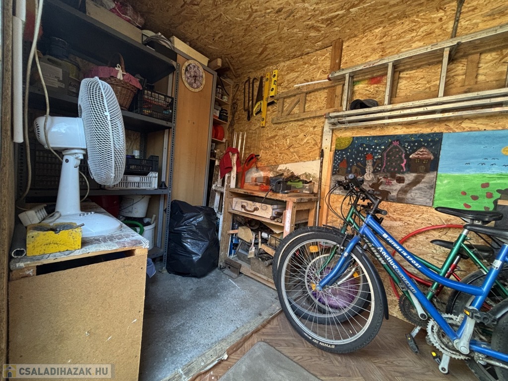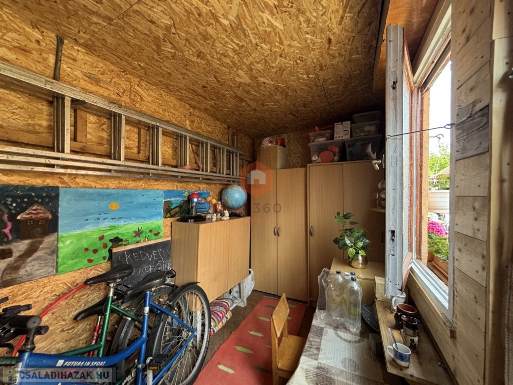 -A házhoz tartozik egy 10 m²-es szigetelt tároló, amely könnyedén átalakítható nyári konyhává vagy műhelytérré.