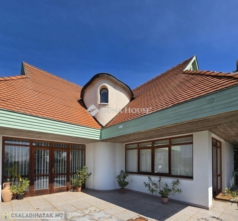 Ez a kb. 240 m²-es, egyedi tervezésű otthon egy tágas, 1870 m²-es telken helyezkedik el, és nem akármilyen múlttal büszkélkedhet: 2000-ben épült Bachmann Zoltán tervei alapján. (Igen, ez már önmagában egy beszédtéma a vacsoraasztalnál )