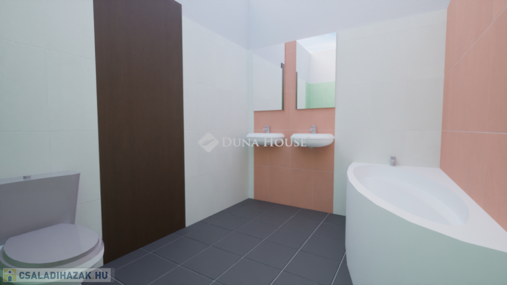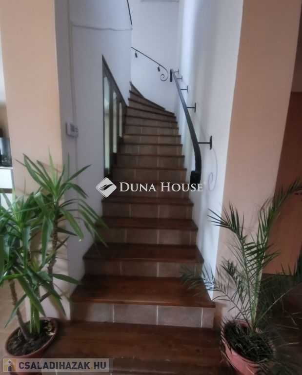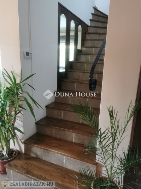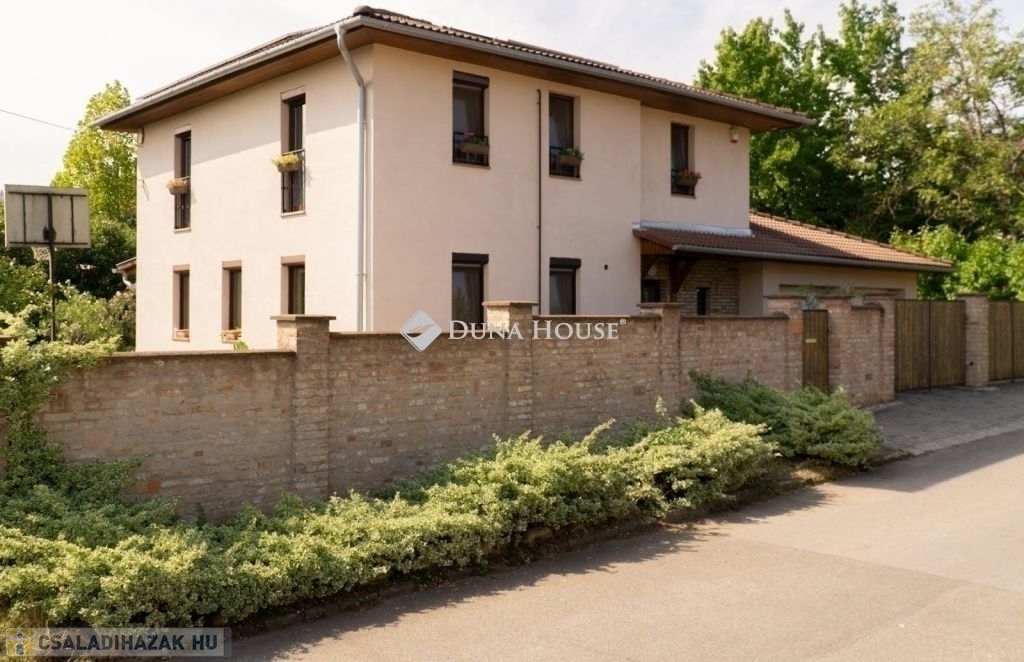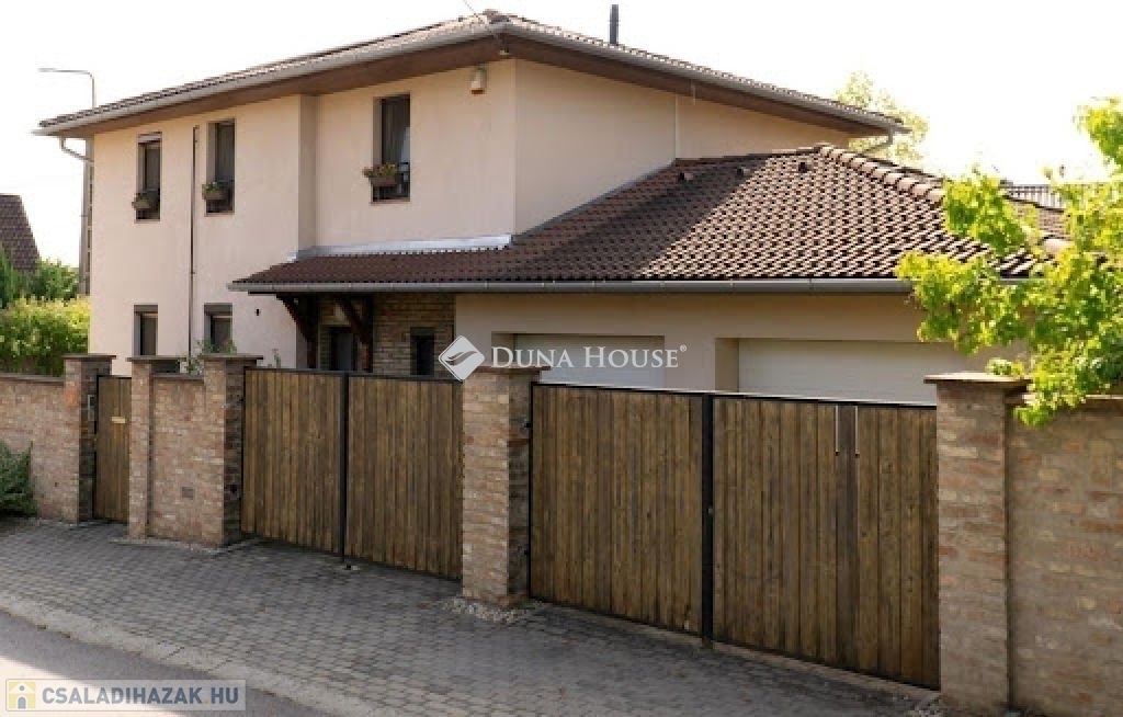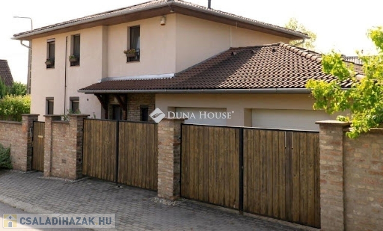 200 nm-en, 2 szinten amerikai konyha-nappali-étkező, 5 szoba, 2 fürdőszoba-wc, 1 önálló wc, emeleti lodzsa, kertkapcsolatos terasz és dupla garázs gondoskodik a lakók kényelméről. Az alsó szinten található az amerikai konyhás nappali-étkező, fürdőszoba wc-vel, + külön wc, és egy 10 nm-es szoba. A nappaliból 40 nm-es, kertkapcsolatos terasz nyílik a hátsó udvarrész felé. A felső szinten 3 db 12 nm-es szoba, fürdőszoba wc-vel és egy 12 nm-es gardrób szoba található. Utóbiban kapott helyet az új gázkazán, továbbá egy infraszauna is. A tágas, 43 nm-es dupla garázs praktikusan a házból is megközelíthető. A telken egy cca. 20 nm-es önálló tároló épület is található. Az épület 2009-ben prémium hőszigetelésű Ytong téglából épült. Klasszikus homlokzata capuccino barna színben, sötétbarna fa ablakaival és barna alumínium redőnyeivel mediterrán érzést áraszt.