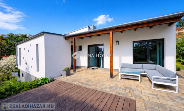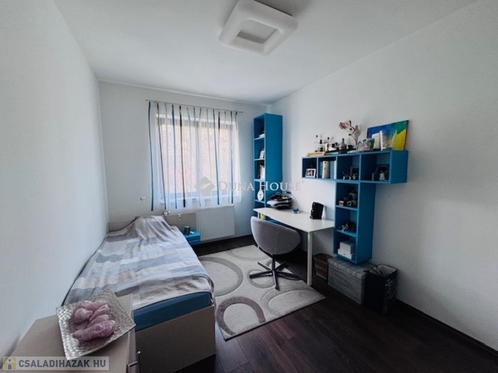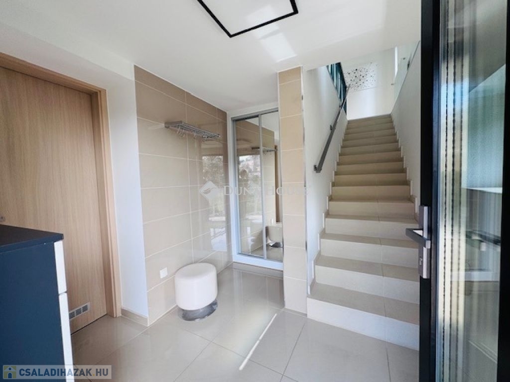Az alsó szinten mosókonyha, valamint egy szauna kialakítására előkészített helyiség található. A nappaliból és a közlekedőből közvetlen kijárat nyílik a hangulatos , gondosan ápolt kertbe, ahol egy stílusos grillterasz is helyet kapott.