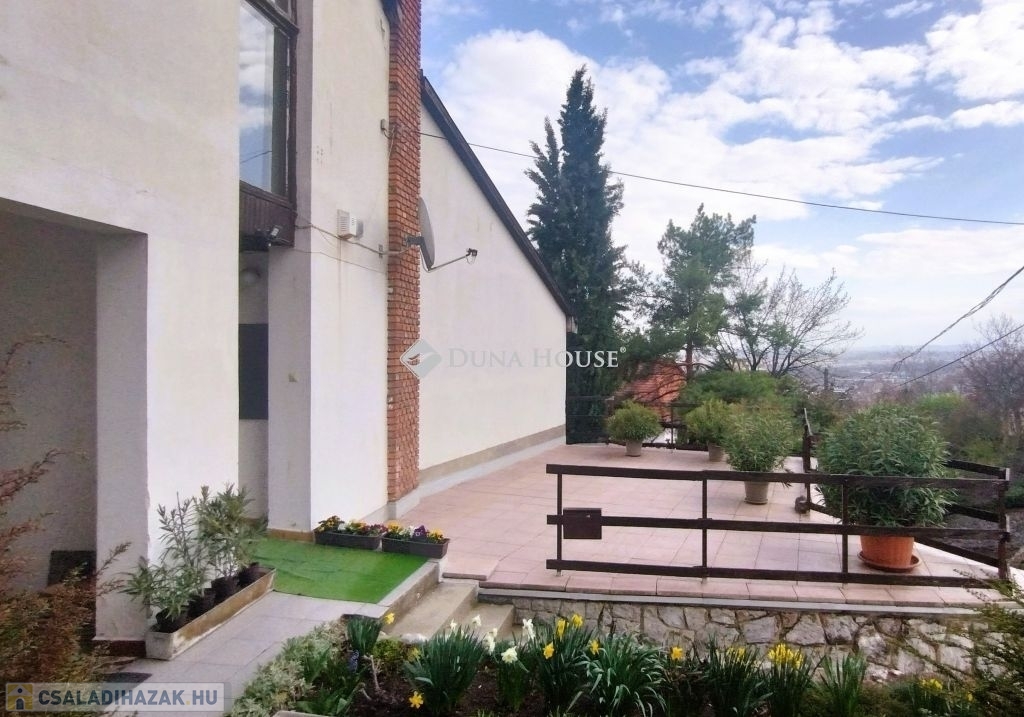Pécs Mecsekoldalban, prémium lokációjú, kiváló adottságokkal és fejlesztési potenciállal rendelkező ingatlan eladó.Az 1672 nm-es szinte sík telken neves építész által tervezett, díjnyertes családi ház áll, amely 1981-ban épült, az élettér mérete ~200 nm. Az épület világos terekkel és jelenleg 5 szobával, dupla konyhával és fürdőszobával, nagy erkéllyel és teraszokkal, garázzsal, borospincével és egyéb kiszolgáló helységekkel rendelkezik.Az épület lakható állapotú, valódi értéke azonban átfogó felújítást követően érhető el. Ekkor mecsekoldali viszonylatban egyedülállóan tágas és intim életteret tud biztosítani a belváros közvetlen közelségében.A telek 30%-ban beépíthető, így a jelenlegi beépítettség mintegy duplájára növelhető, ami ideális lehetőséget ad az épület és a kert saját igényeknek megfelelő alakítására. A nyugodt, zöld környezet, valamint a kiváló szomszédság még inkább kiemeli az ingatlanban rejlő lehetőségeket, ahol több generáció is otthonra találhat.A benapozott, ma már ritkaságnak számitó telek a Pálos templom és a város irányába panorámával rendelkezik. A telek értékét meghatározza, hogy a városközpont nemcsak autóval, de tömegközlekedéssel és akár gyalogosan is kifejezetten könnyen elérhető.A közel szabályos négyzet alakú telek kisvárosias lakóövezet (Lk-0642) besorolású, ahol 4 lakásos társasház kialakítására is lehetőség nyílik. Az ingatlant ezért befektetők, ingatlanfejlesztők figyelmébe is ajánljuk.