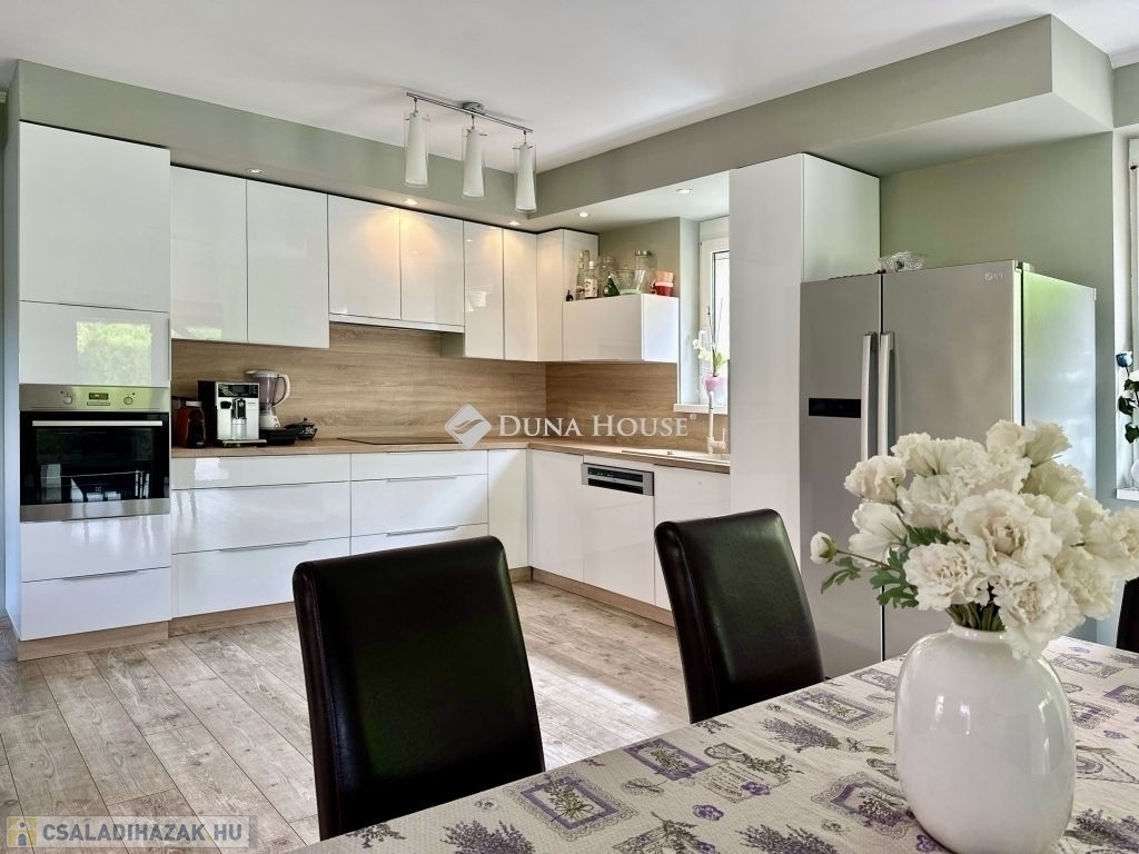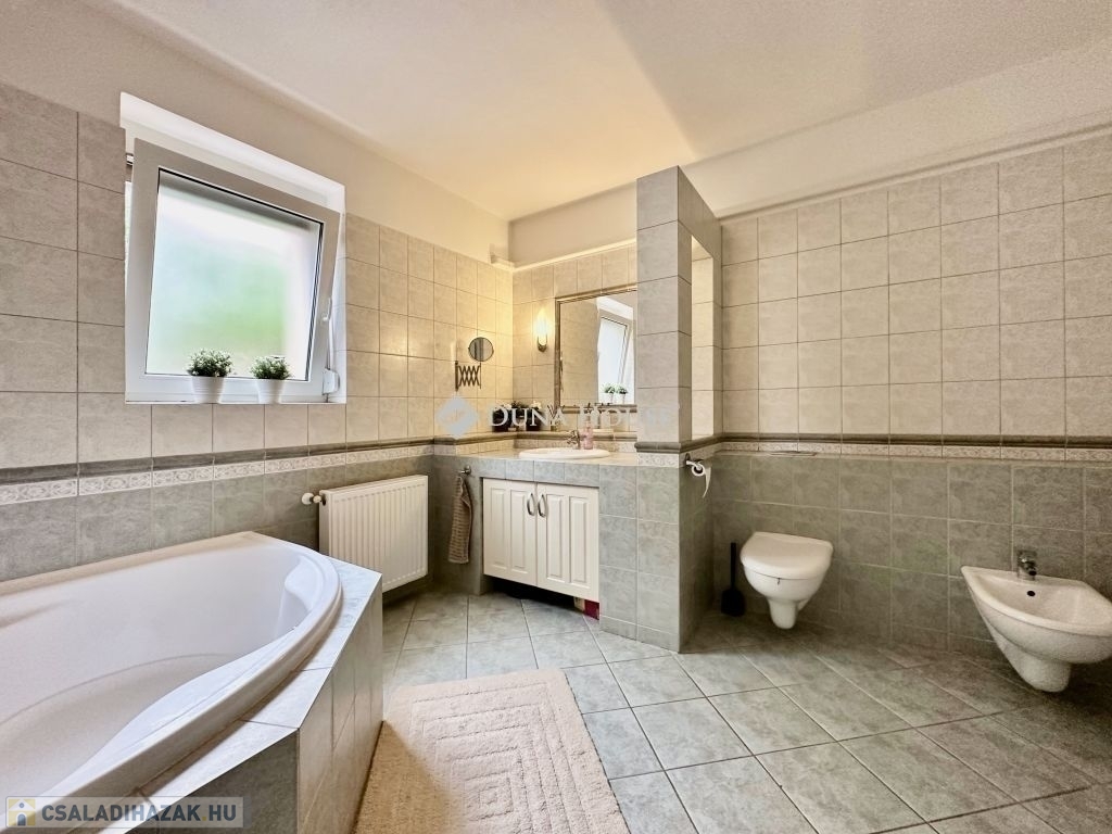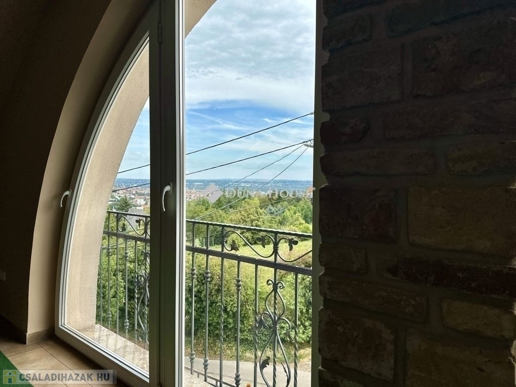 Eladásra kínálunk egy panorámás, 300 m²-es, 7 szobás, dupla komfortos, téglaépítésű , akár 2 generáció együttélésére is alkalmas családi otthont. Ne hagyja ki ezt a különleges lehetőséget, hogy a város felett, de mégis közel annak szívéhez élhessen. A mindkét fürdőszoba designja különleges figyelmet kapott, ahol a minőségi burkolatok és szaniterek mellett egyedi világítás gondoskodik a relaxáló atmoszféráról. Itt a nap bármely szakában élvezhetjük a kényeztetést és a privát wellness élményét. Fedett teraszon Jakuzzi található.Elektromos autótöltés kiépítve. A modern, teljesen felszerelt konyha minden igényt kielégít, legyen szó akár egy gyors reggeliről vagy egy nagyobb családi vacsoráról. Az ingatlan klímával , elektromos redőnnyel felszerelt. Keressen minket bizalommal az ingatlan megtekintéséhez, és tegyen szert erre a kivételes otthonra.