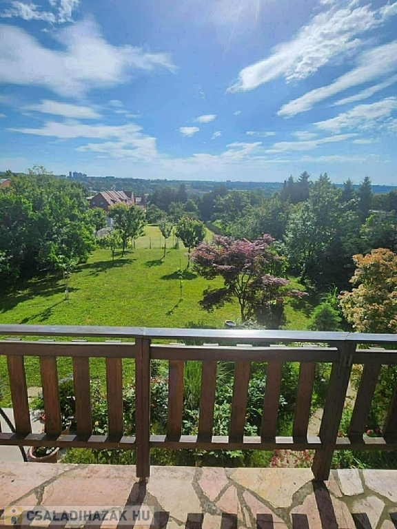 A házhoz két terasz, az emeleten pedig egy erkély tartozik, ahonnan kellemes kilátás nyílik a rendezett, gondozott kertre. Az autók biztonságos parkolásáról dupla garázs gondoskodik.
