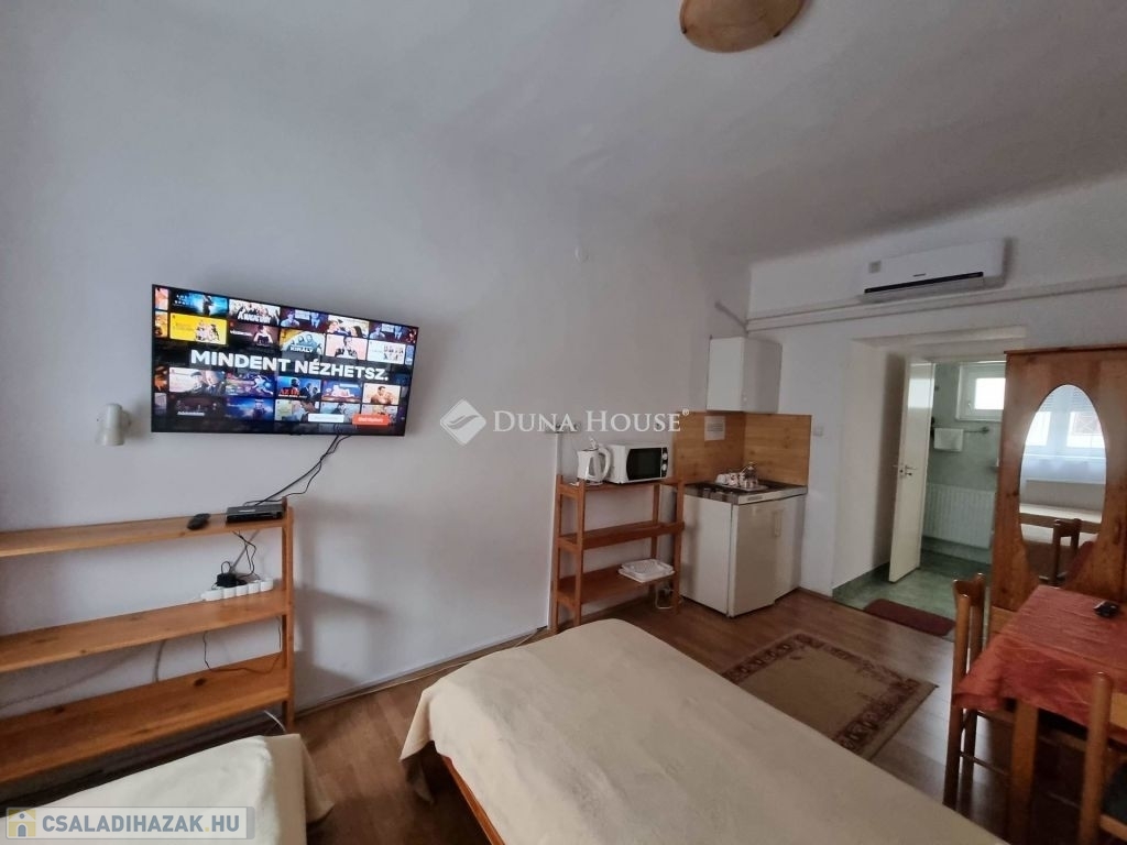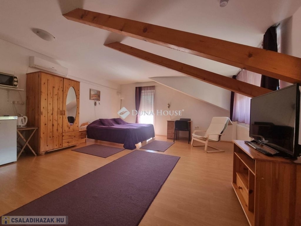 KIVÁLÓ BEFEKTETÉSI LEHETŐSÉG - Egyetemvárosi apartmanház eladó!!!!Kórház tér szomszédságában eladó egy 840nm-es telken elhelyezkedő, össz.: 340nm-es hasznos alapterülettel valamint egy 40nm-es pincével rendelkező társasház, udvari autó beállókkal és zöld területtel.A 12 stúdió apartmant magában foglaló épület egy felújított és egy újszerű szárnyból áll.A felújított részen található 5 db apartman és a kazánház, valamint alatta tökéletes állapotban lévő, száraz pince.Az újszerű részen további 7db apartman, recepció és egy iroda.Az összes lakó egység jól felszerelt, légkondicionált és több mint egy évtizede, jól bejáratott rövid távú szálláshelyként funkcionál, visszatérő vendég körrel, bejáratott infrastruktúrával.A rendezett zárt udvar elektromos kapun közelíthető meg, kamera rendszer került kiépítésre, a fűtést gáz kazán látja el, a napkollektorok segítik a meleg víz előállítását.Lehetőség van további napelem felhelyezésére mely tovább csökkentheti az egységek rezsi költségét.A telek beépíthetősége 60%, így további bővítésre, beruházásra is alkalmas.A tevékenység azonnal folytatható a vásárlást követően, a már lefoglalt időpontokkal és működő portfólióval.További információkért, tervekért, és kimutatásokért hívjanak.
