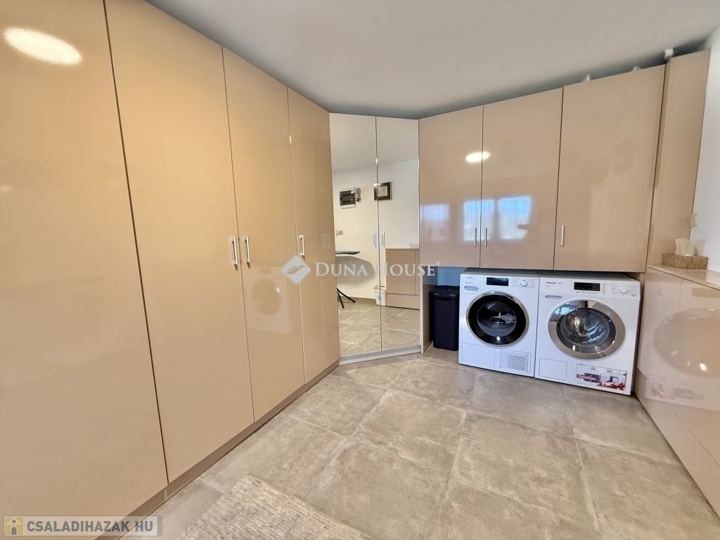 Mecsekoldali panorámás, mediterrán stílusú Prémium családi ház!Eladásra kínálunk egy 2014-ben épült, prémium kategóriás mediterrán családi házat a Mecsekoldal egyik legszebb panorámájú részén. Az ingatlan háromszintes, összesen 275 m² -es, és minden részletében a minőséget és igényességet képviseli.A tágas, napfényes terekkel rendelkező otthon tökéletes választás azoknak, akik a modern technológia, a természet és a kifinomult esztétika harmóniáját keresik. A ház örökpanorámás kilátást kínál a városra és a Mecsek zöldjeire, miközben a környék nyugalma igazi otthoni hangulatot teremt.A belső terek átgondolt elrendezésűek: tágas nappali, kényelmes étkező, vadonatúj, modern konyha, két gyermekszoba, egy hálószoba, két gardrób, két fürdőszoba és két különálló mosdó biztosítja a család kényelmét. A házhoz két nagyméretű terasz, egy óriási pince, valamint gondozott, mediterrán hangulatú kert tartozik automata öntözőrendszerrel és játszótérrel.A kert központi eleme a feszített víztükrű, fűthető-hűthető 4x8 méteres medence, amely masszázs funkcióval és fejzuhannyal is felszerelt, így egész évben a pihenés és feltöltődés helyszíne lehet. A fedett terasz kézzel faragott, rétegragasztott fa szerkezettel, toló-nyitható ablakrendszerrel készült, így a külső és belső terek harmonikusan összekapcsolódnak.Műszaki jellemzőkGlück Kft. által kézzel készített, hossztoldásmentes, rétegragasztott Borovi fenyő nyílászárók, háromrétegű üvegezésselRehau fűtésrendszer: kizárólag padló- és falfűtés, radiátorok nélkülFűtés: gáz, áram, valamint vízteres kandalló44 cm vastag Porotherm tégla + 12 cm grafit hőszigetelés megfelel passzívház követelményeknek10 kW-os szaldós napelemes rendszer, rendkívül alacsony rezsiköltséggel (csak víz és alapdíjak)Acélszerkezetű, hőszigetelt tető Bramac Római Protector cserépfedésselWifis, távirányítható, hőszigetelt alumínium redőnyök szúnyoghálóvalT-Home optikai internet akár 2 Gb/s sebességgelEz a panorámás, energiatakarékos, exkluzív Mecsekoldali villa ritka lehetőség azok számára, akik kompromisszumok nélkül keresnek egy modern, elegáns és egyben otthonos életteret Pécs egyik legnívósabb környékén.Bővebb információért, megtekintésért várom hívását!
