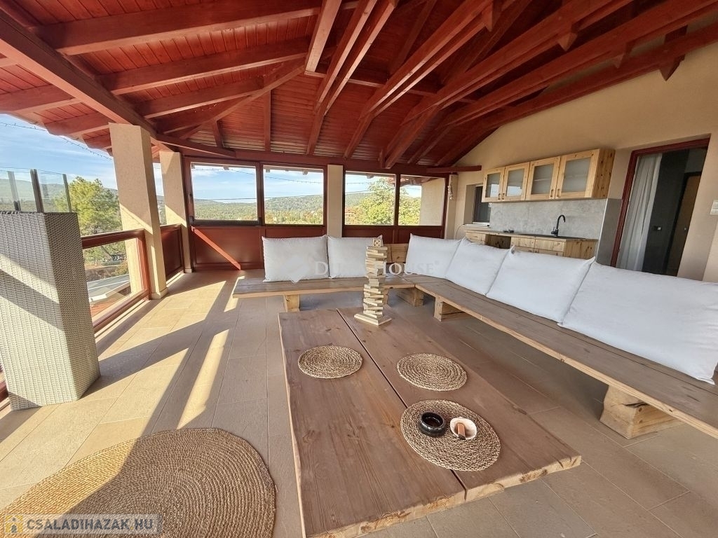Mecsekoldali panorámás, mediterrán stílusú Prémium családi ház!Eladásra kínálunk egy 2014-ben épült, prémium kategóriás mediterrán családi házat a Mecsekoldal egyik legszebb panorámájú részén. Az ingatlan háromszintes, összesen 275 m² -es, és minden részletében a minőséget és igényességet képviseli.A tágas, napfényes terekkel rendelkező otthon tökéletes választás azoknak, akik a modern technológia, a természet és a kifinomult esztétika harmóniáját keresik. A ház örökpanorámás kilátást kínál a városra és a Mecsek zöldjeire, miközben a környék nyugalma igazi otthoni hangulatot teremt.A belső terek átgondolt elrendezésűek: tágas nappali, kényelmes étkező, vadonatúj, modern konyha, két gyermekszoba, egy hálószoba, két gardrób, két fürdőszoba és két különálló mosdó biztosítja a család kényelmét. A házhoz két nagyméretű terasz, egy óriási pince, valamint gondozott, mediterrán hangulatú kert tartozik automata öntözőrendszerrel és játszótérrel.A kert központi eleme a feszített víztükrű, fűthető-hűthető 4x8 méteres medence, amely masszázs funkcióval és fejzuhannyal is felszerelt, így egész évben a pihenés és feltöltődés helyszíne lehet. A fedett terasz kézzel faragott, rétegragasztott fa szerkezettel, toló-nyitható ablakrendszerrel készült, így a külső és belső terek harmonikusan összekapcsolódnak.Műszaki jellemzőkGlück Kft. által kézzel készített, hossztoldásmentes, rétegragasztott Borovi fenyő nyílászárók, háromrétegű üvegezésselRehau fűtésrendszer: kizárólag padló- és falfűtés, radiátorok nélkülFűtés: gáz, áram, valamint vízteres kandalló44 cm vastag Porotherm tégla + 12 cm grafit hőszigetelés megfelel passzívház követelményeknek10 kW-os szaldós napelemes rendszer, rendkívül alacsony rezsiköltséggel (csak víz és alapdíjak)Acélszerkezetű, hőszigetelt tető Bramac Római Protector cserépfedésselWifis, távirányítható, hőszigetelt alumínium redőnyök szúnyoghálóvalT-Home optikai internet akár 2 Gb/s sebességgelEz a panorámás, energiatakarékos, exkluzív Mecsekoldali villa ritka lehetőség azok számára, akik kompromisszumok nélkül keresnek egy modern, elegáns és egyben otthonos életteret Pécs egyik legnívósabb környékén.Bővebb információért, megtekintésért várom hívását!