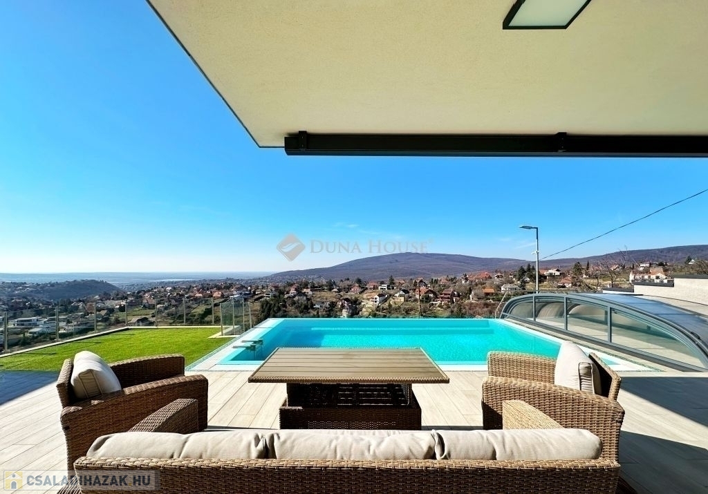 Exkluzív panorámás családi ház eladó Pécs MecsekoldalánPécs, Mecsekoldalon kínálunk megvételre kivételes adottságokkal rendelkező, újszerű állapotú családi házat. A gondosan megtervezett terek, a prémium anyaghasználat és a lenyűgöző körpanoráma tökéletes harmóniát alkotnak.Főbb jellemzők: 220 m² letisztult, elegáns lakótér 2087 m²-es, teljes intimitást biztosító telek 3 hálószoba, 2 fürdőszoba Világos, nagyvonalú belső terek, modern élettér-kialakítás 60 m²-es panorámás, részben fedett terasz 45 m²-es feszített víztükrű medence Privát szauna a teljes kikapcsolódásért Zavartalan körpanoráma Prémium műszaki tartalom: Energiahatékony hőszivattyús rendszer Wolf központi szellőztető rendszer Vízlágyító és automata öntözőrendszer Elektromos zsalúziák minden nyílászárón Riasztó- és kamerarendszer Magas szintű kivitelezés: 38-as PTH falazat, 10 cm-es hőszigeteléssel Modern alumínium nyílászárók Időtálló, elegáns mészkő homlokzat Prémium burkolatok: minőségi laminált parketta és mázas kerámia 40 m²-es garázs Hörmann kapuval Teljesen intim, zárt telek További értékek: Az ingatlan mindössze 5 éve épült, újszerű állapotban van Igény esetén teljes bútorzattal (megegyezés szerint) A vételár részét képezi egy kb. 700 m²-es, panorámás, részben közművesített telekrészEz az ingatlan ideális választás azok számára, akik kompromisszumok nélkül keresnek exkluzív otthont, páratlan környezetben.További információért kérem, keressen bizalommal!