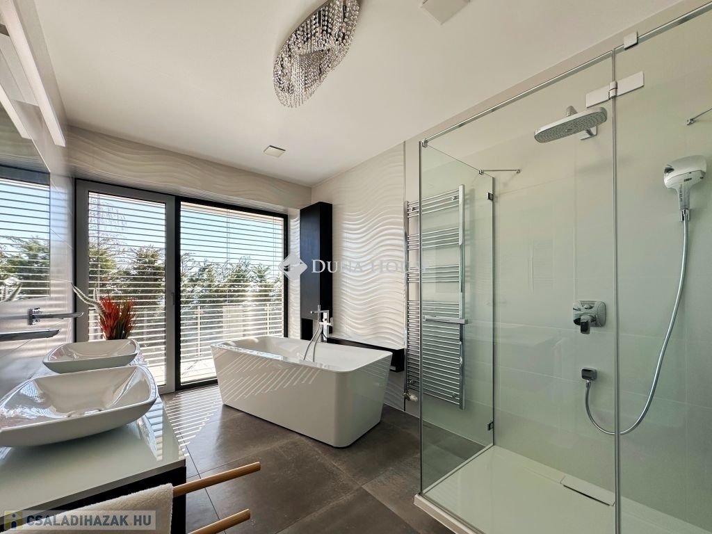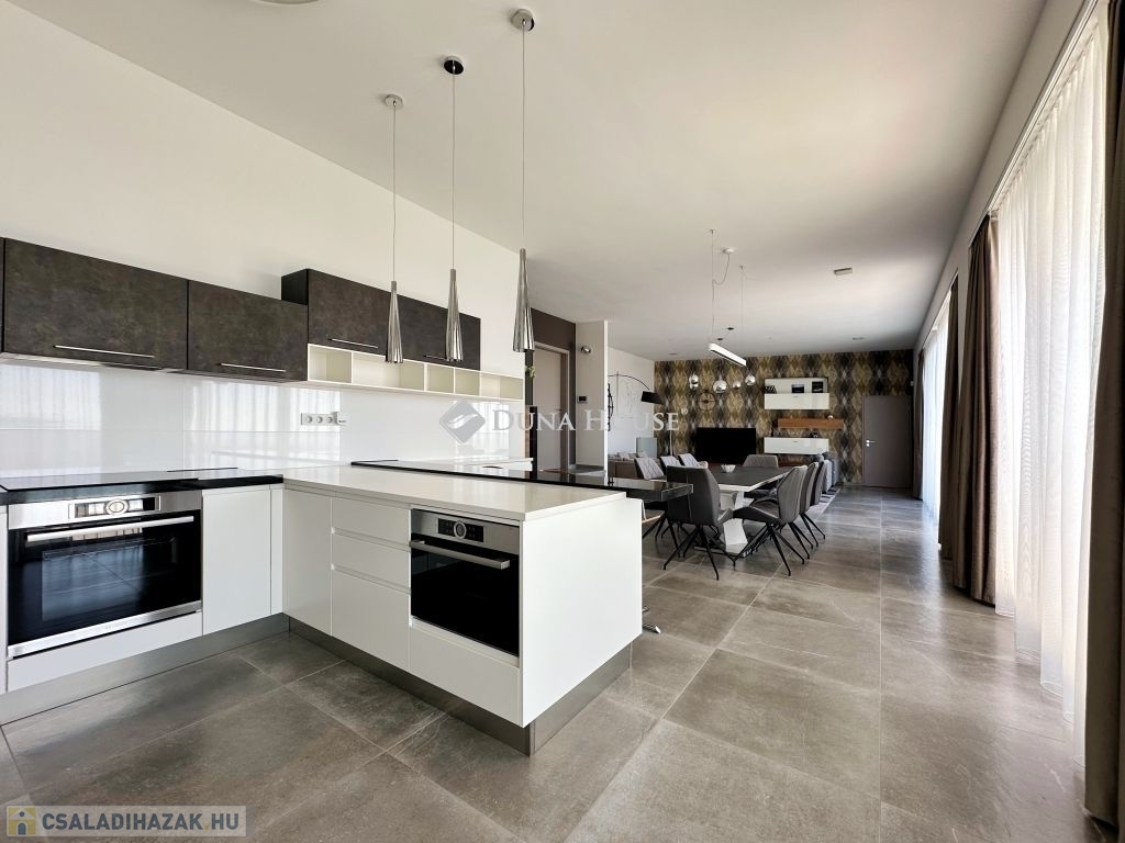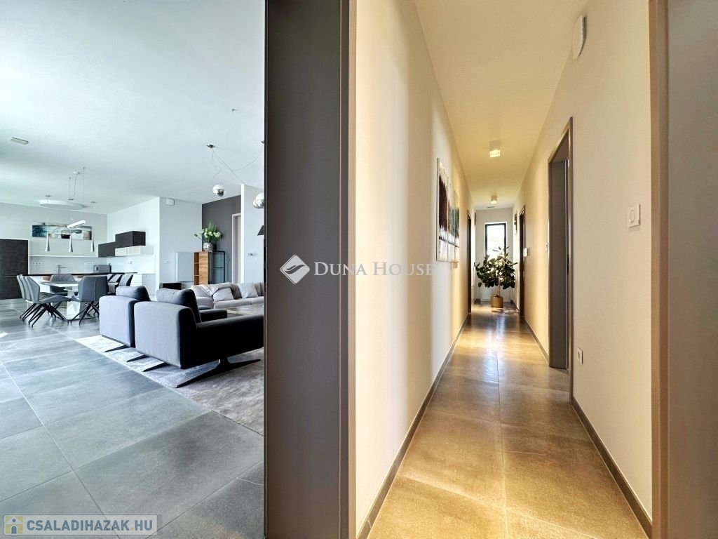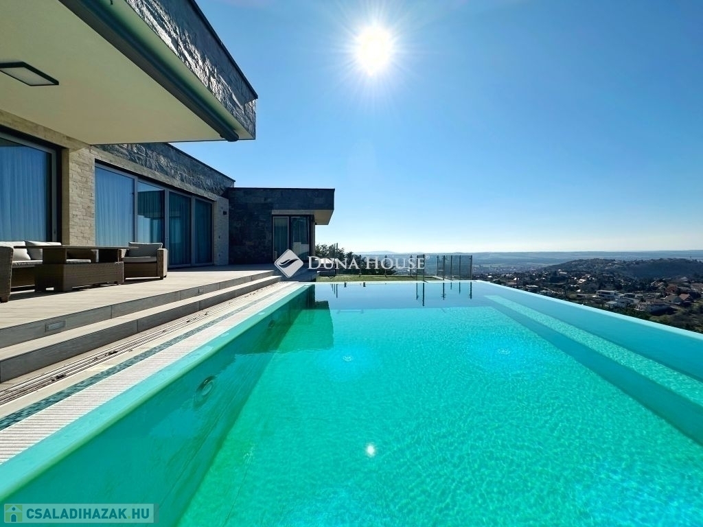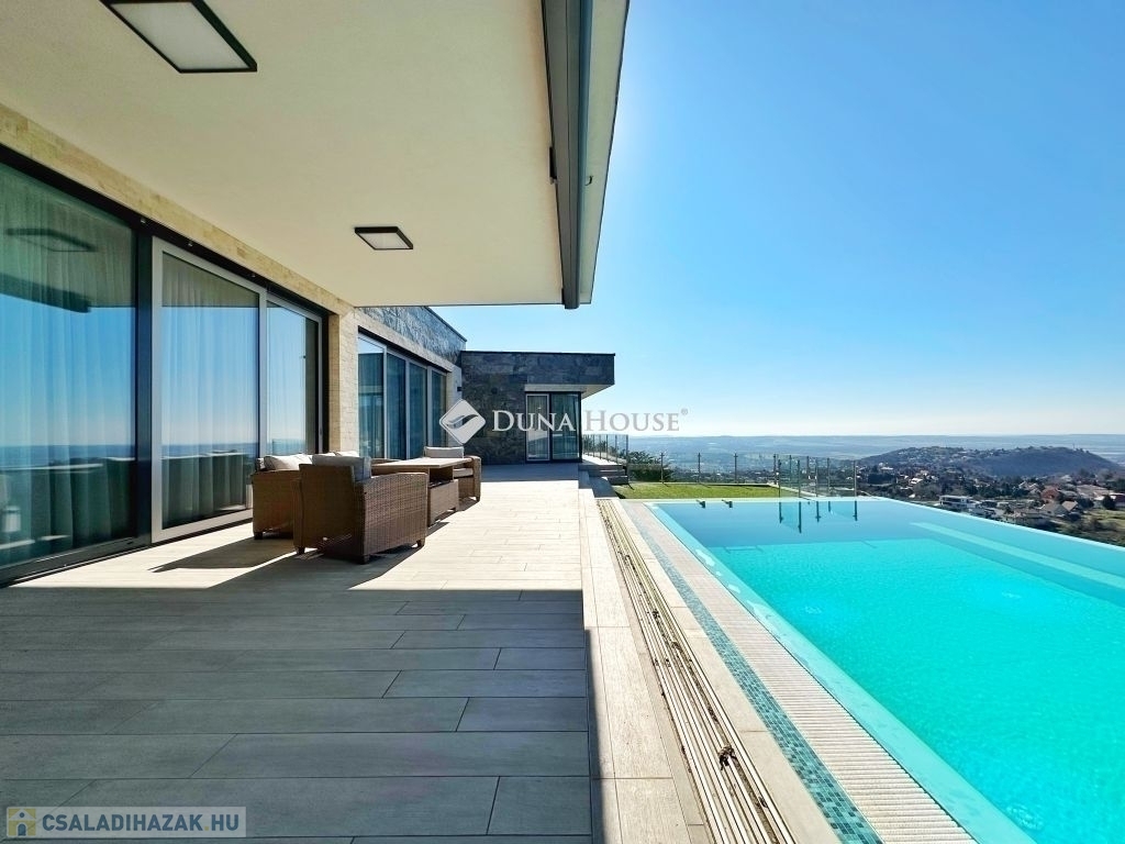 Exkluzív panorámás családi ház eladó Pécs MecsekoldalánPécs, Mecsekoldalon kínálunk megvételre kivételes adottságokkal rendelkező, újszerű állapotú családi házat. A gondosan megtervezett terek, a prémium anyaghasználat és a lenyűgöző körpanoráma tökéletes harmóniát alkotnak.Főbb jellemzők: 220 m² letisztult, elegáns lakótér 2087 m²-es, teljes intimitást biztosító telek 3 hálószoba, 2 fürdőszoba Világos, nagyvonalú belső terek, modern élettér-kialakítás 60 m²-es panorámás, részben fedett terasz 45 m²-es feszített víztükrű medence Privát szauna a teljes kikapcsolódásért Zavartalan körpanoráma Prémium műszaki tartalom: Energiahatékony hőszivattyús rendszer Wolf központi szellőztető rendszer Vízlágyító és automata öntözőrendszer Elektromos zsalúziák minden nyílászárón Riasztó- és kamerarendszer Magas szintű kivitelezés: 38-as PTH falazat, 10 cm-es hőszigeteléssel Modern alumínium nyílászárók Időtálló, elegáns mészkő homlokzat Prémium burkolatok: minőségi laminált parketta és mázas kerámia 40 m²-es garázs Hörmann kapuval Teljesen intim, zárt telek További értékek: Az ingatlan mindössze 5 éve épült, újszerű állapotban van Igény esetén teljes bútorzattal (megegyezés szerint) A vételár részét képezi egy kb. 700 m²-es, panorámás, részben közművesített telekrészEz az ingatlan ideális választás azok számára, akik kompromisszumok nélkül keresnek exkluzív otthont, páratlan környezetben.További információért kérem, keressen bizalommal!