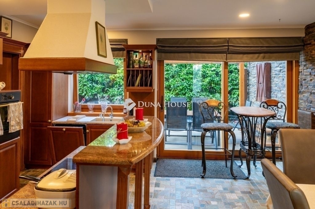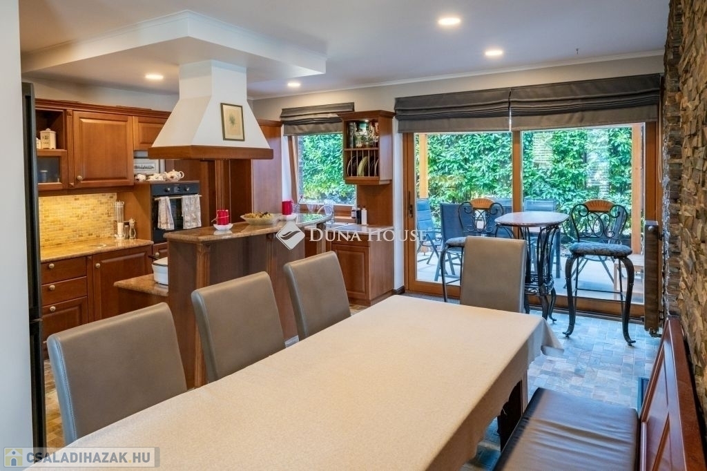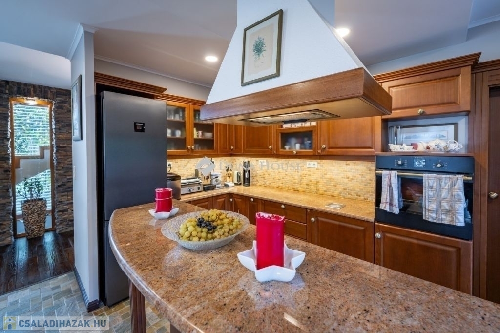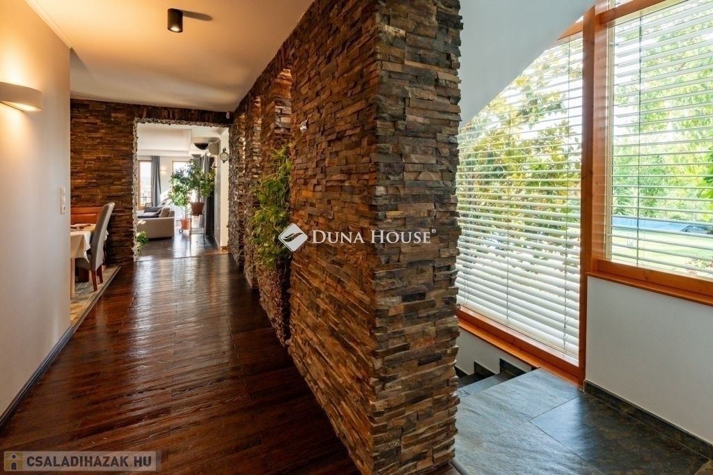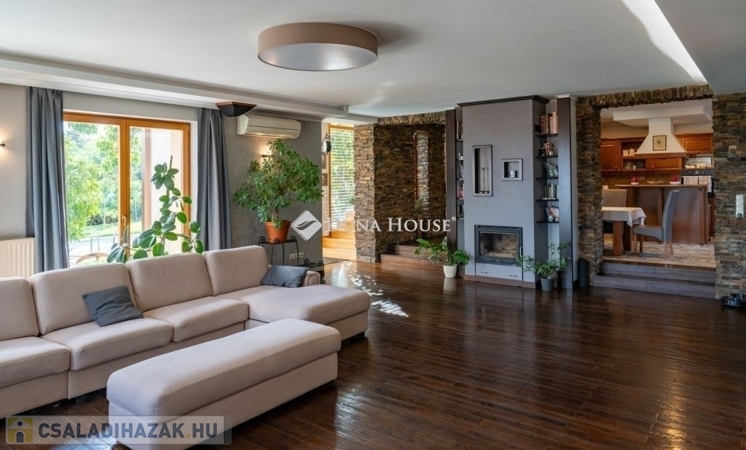 Eladó egy ritka gyöngyszem ingatlan, mely 2000 m2-es telken lévő családi otthon, 380 m² összterülettel büszkélkedhet, ideértve a fő lakóteret, amely 5 hálószobával , rendelkezik . Ezenkívül egy külön 55 m²-es lakást, egy 2 beállásos garázst, tárolókat, valamint egy több mint 100 m²-es, természetes kőburkolatú terasszal, pergolával ,parkosított kerttel, halas tóval .Legyen szó akár nagyobb családokról, akár olyanokról, akik szeretik a vendégeiket luxus körülmények között fogadni, ez az ingatlan tökéletes választás lehet. Az elszeparált lakrész lehetőséget nyújt vendégek kényelmes elszállásolására vagy akár egy nagyobb korú gyermek önálló életterének kialakítására is.Az ingatlan nem csupán a luxus szolgáltatásaival, hanem esztétikai értékeivel is kiemelkedik. A magas minőségű anyagok felhasználása és a részletekre való odafigyelés egy olyan otthont teremt, amely minden igényt kielégít. A panorámás kilátás pedig még inkább emeli az ingatlan értékét, hiszen minden napja egy festménybe illő látvánnyal kezdődhet.A kényelem és a luxus jegyében épült ingatlanban minden megtalálható, amire csak vágyhat: egy gyönyörűen kialakított medence, szauna, pezsgőfürdő, hangulatos teraszok, és természetesen a téli estéket kellemessé tevő kandalló. A napfényes terek gondoskodnak arról, hogy otthona mindig világos és meleg legyen, míg a modern klímaberendezés a nyári napokat is kellemessé teszi.Összefoglalva, ez az ingatlan nem csupán egy lakóhely, hanem egy olyan befektetés, amely értékálló marad a jövőben is. Ha Ön egy olyan otthont keres, ahol a luxus, a kényelem és a lélegzetelállító kilátás mindennapos, ne keressen tovább. Fedezze fel, mit kínál ez a különleges ingatlan és tegyen egy lépést álmai otthona felé.
