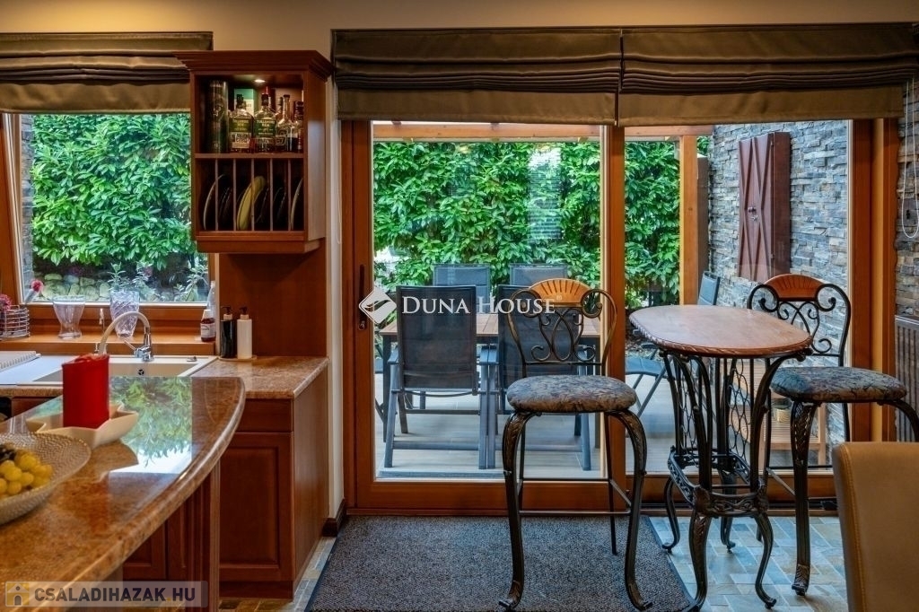 Eladó egy ritka gyöngyszem ingatlan, mely 2000 m2-es telken lévő családi otthon, 380 m² összterülettel büszkélkedhet, ideértve a fő lakóteret, amely 5 hálószobával , rendelkezik . Ezenkívül egy külön 55 m²-es lakást, egy 2 beállásos garázst, tárolókat, valamint egy több mint 100 m²-es, természetes kőburkolatú terasszal, pergolával ,parkosított kerttel, halas tóval .Legyen szó akár nagyobb családokról, akár olyanokról, akik szeretik a vendégeiket luxus körülmények között fogadni, ez az ingatlan tökéletes választás lehet. Az elszeparált lakrész lehetőséget nyújt vendégek kényelmes elszállásolására vagy akár egy nagyobb korú gyermek önálló életterének kialakítására is.Az ingatlan nem csupán a luxus szolgáltatásaival, hanem esztétikai értékeivel is kiemelkedik. A magas minőségű anyagok felhasználása és a részletekre való odafigyelés egy olyan otthont teremt, amely minden igényt kielégít. A panorámás kilátás pedig még inkább emeli az ingatlan értékét, hiszen minden napja egy festménybe illő látvánnyal kezdődhet.A kényelem és a luxus jegyében épült ingatlanban minden megtalálható, amire csak vágyhat: egy gyönyörűen kialakított medence, szauna, pezsgőfürdő, hangulatos teraszok, és természetesen a téli estéket kellemessé tevő kandalló. A napfényes terek gondoskodnak arról, hogy otthona mindig világos és meleg legyen, míg a modern klímaberendezés a nyári napokat is kellemessé teszi.Összefoglalva, ez az ingatlan nem csupán egy lakóhely, hanem egy olyan befektetés, amely értékálló marad a jövőben is. Ha Ön egy olyan otthont keres, ahol a luxus, a kényelem és a lélegzetelállító kilátás mindennapos, ne keressen tovább. Fedezze fel, mit kínál ez a különleges ingatlan és tegyen egy lépést álmai otthona felé.