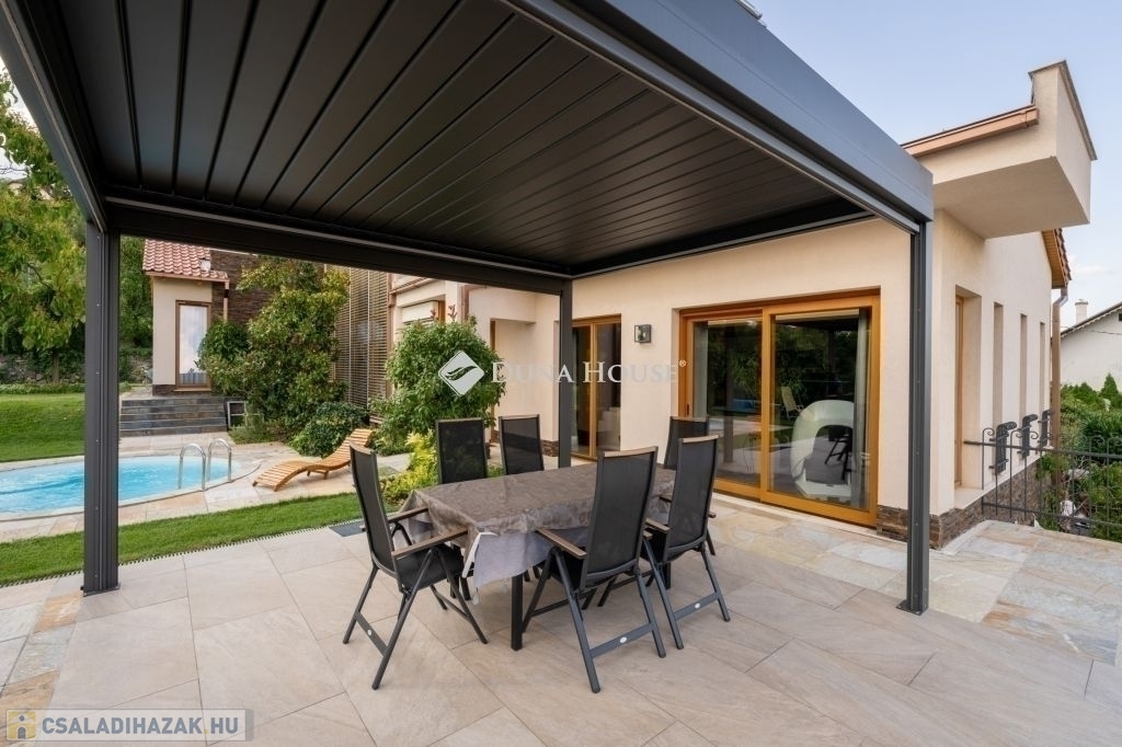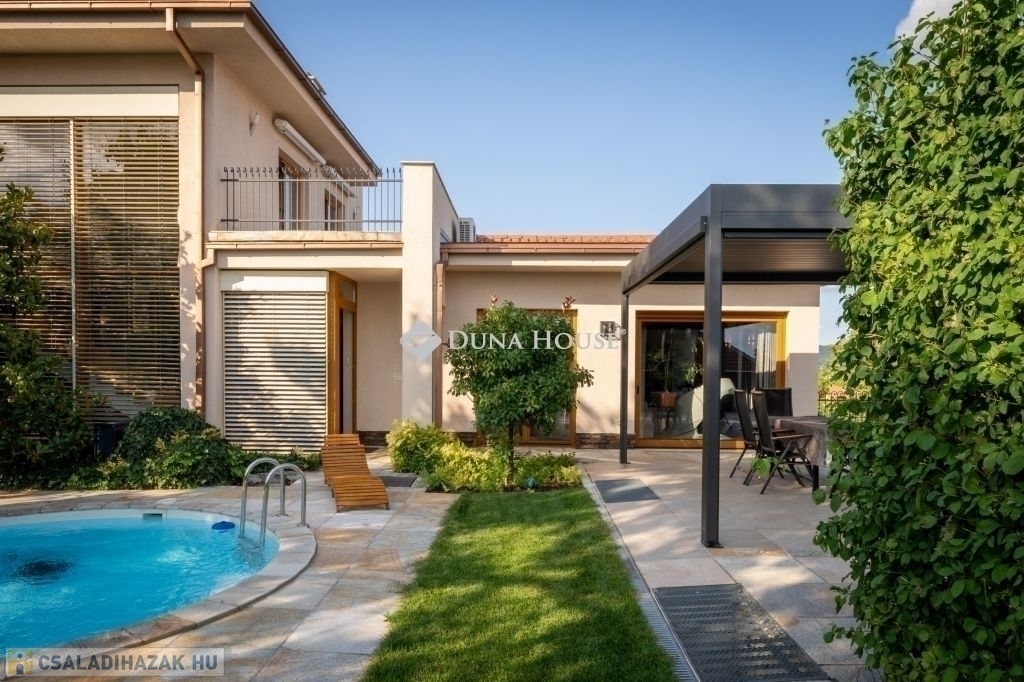 A kényelem és a luxus jegyében épült ingatlanban minden megtalálható, amire csak vágyhat: egy gyönyörűen kialakított medence, szauna, pezsgőfürdő, hangulatos teraszok, és természetesen a téli estéket kellemessé tevő kandalló. A napfényes terek gondoskodnak arról, hogy otthona mindig világos és meleg legyen, míg a modern klímaberendezés a nyári napokat is kellemessé teszi.