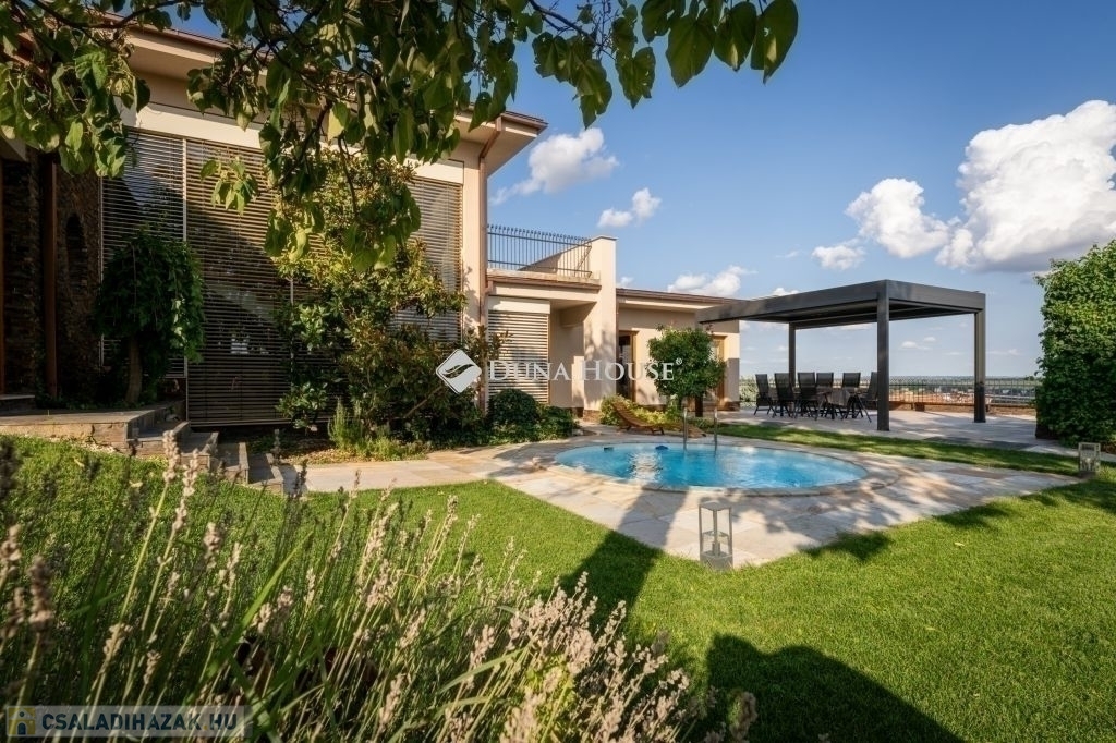 Eladó egy ritka gyöngyszem ingatlan, mely 2000 m2-es telken lévő családi otthon, 380 m² összterülettel büszkélkedhet, ideértve a fő lakóteret, amely 5 hálószobával , rendelkezik . Ezenkívül egy külön 55 m²-es lakást, egy 2 beállásos garázst, tárolókat, valamint egy több mint 100 m²-es, természetes kőburkolatú terasszal, pergolával ,parkosított kerttel, halas tóval .