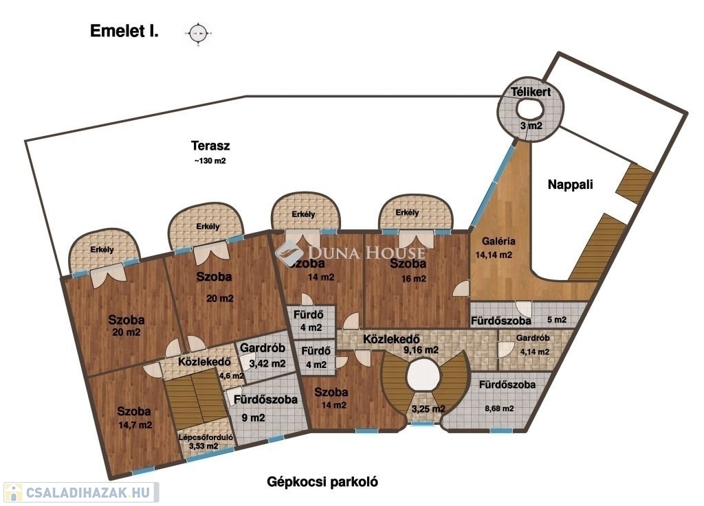 több mint 200 m² parkolófelület az ingatlan udvarán,