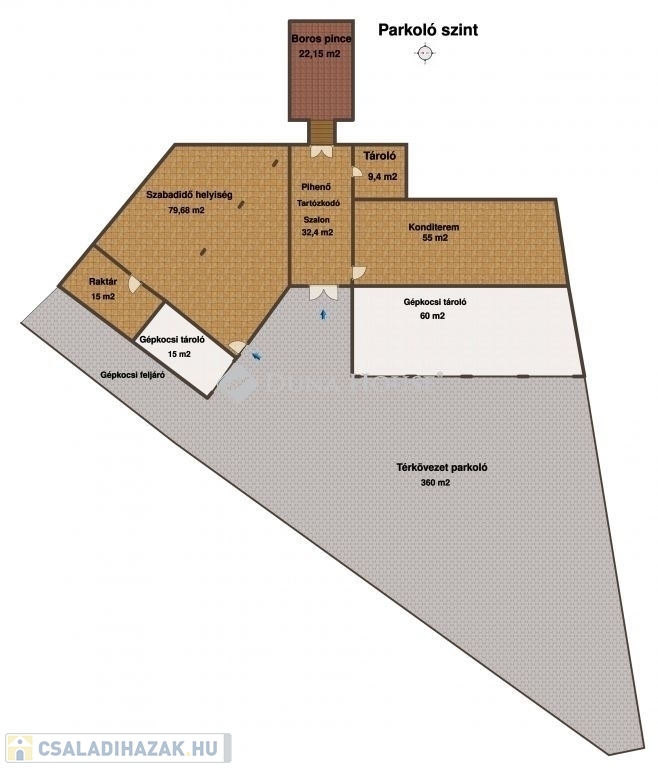 több mint 200 m² parkolófelület az ingatlan udvarán,