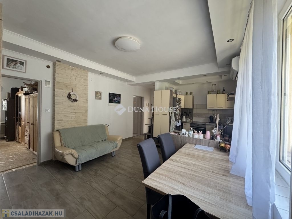 Kedves Érdeklődő!Pécs-Vasason, csendes utcában, zöld környezetben kínálunk megvételre egy felújított családi házat.A ház alapterülete 72 m2, amely 949 m2-es telken helyezkedik el.A felújítás tartalmazza:- tetőszigetelés, 10 cm-es kőzetgyapot- 10 cm-es homlokzati hőszigetelés- 8 cm-es lábazat szigetelés (folyamatban van, jelenleg 60%-os készültségű)- aljzat hő- és vízszigetelés- teljes vízvezeték és villamos hálózat felújítása- új műanyag nyílászárók- új beltéri ajtók- hideg-meleg burkolatok cseréje- hűtő-fűtő klímák felszerelése 3 helyiségbenAz ingatlan 2 különnyíló szoba plusz amerikai konyha-nappalis elrendezésű, a fűtése korszerű, klímával megoldott, de a gáz is be van vezetve a házba, így a lehetőség adott további fűtés kialakítására.Az ingatlan rendelkezik továbbá melléképületekkel, szerszámtárolóval, illetve száraz pincével is, amely a háztól teljesen külön helyezkedik el.A parkosított, termő gyümölcsfákkal rendelkező udvaron megtalálható egy masszív, fából épített dupla autóbeálló, ásott kút, konyhakert, valamint a gyermekek kikapcsolódását biztosító fa játszóház.Pécs központja 20 percen belül elérhető autóval, buszmegálló az utcában található, 10 perc sétára a háztól.A környék csendes, rendezett, a lakókörnyezet összetartó.Megtekintésért és további információért várom hívását!