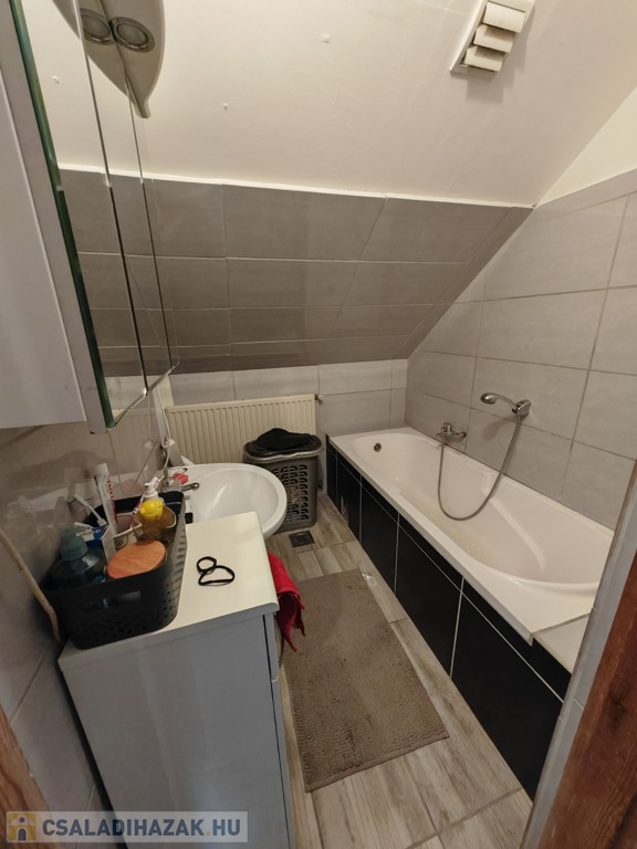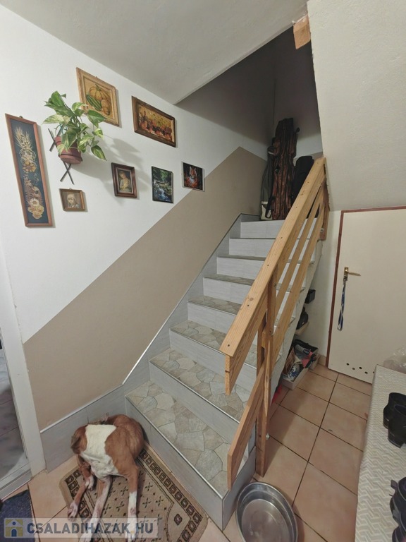Az alsó és a felső szinten is 2,5 szoba, fürdő, konyha, WC, előszoba az elrendezés.